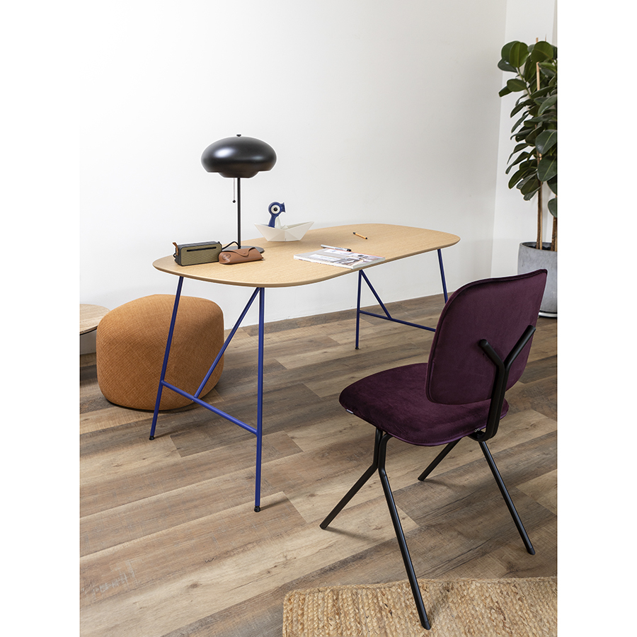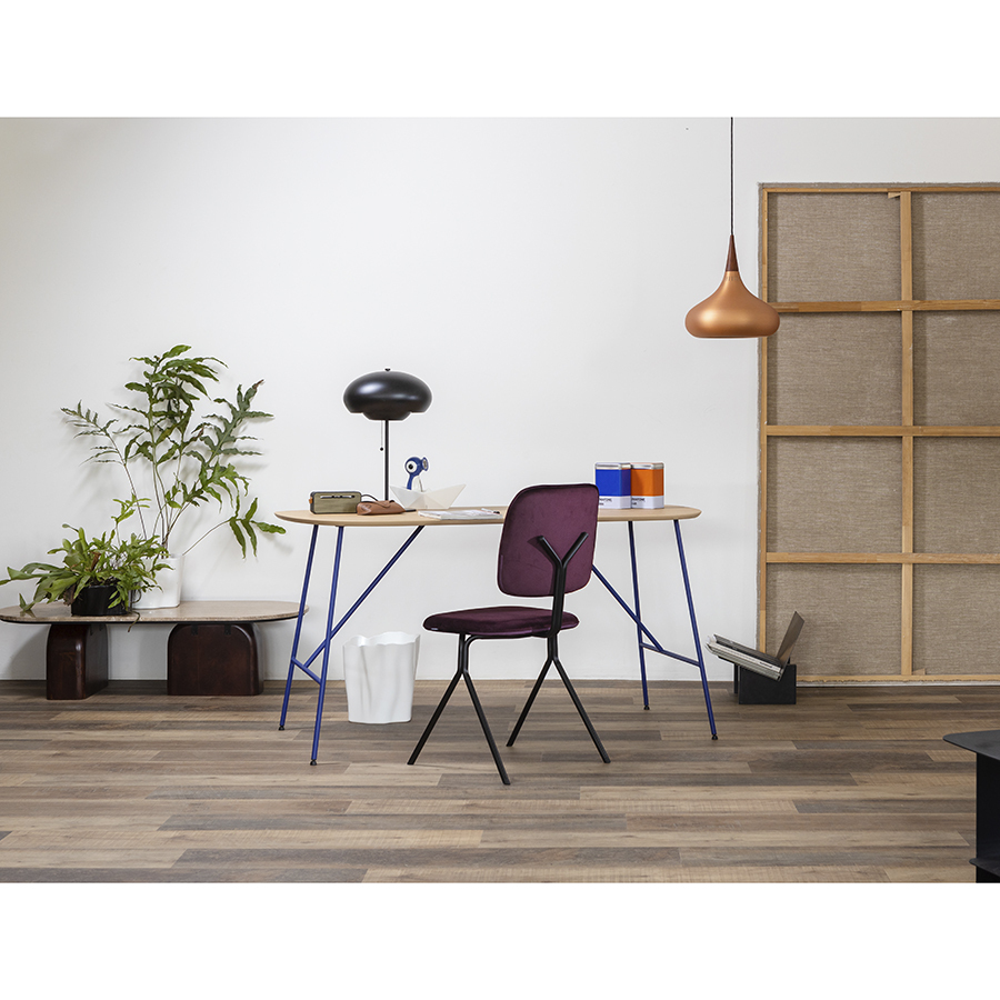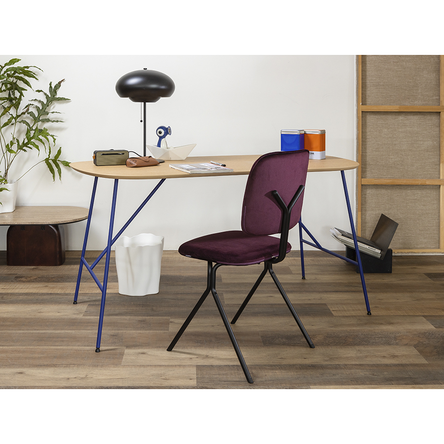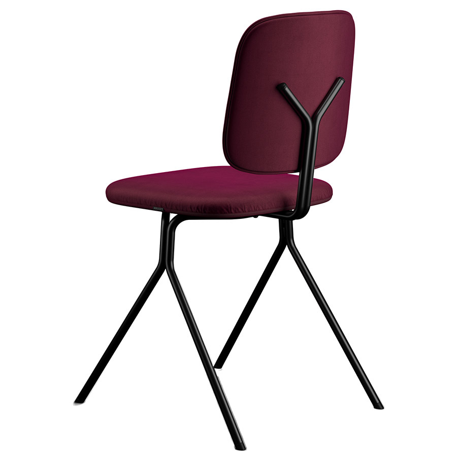 Коллекция Ror – это мебель с индивидуальным характером. Отправной точкой создания линейки стало динамичное движение, воплощенное в логотипе Олимпиады 80, где беговые дорожки образуют силуэт Спасской башни. Стул Y имеет удобную посадку за счет высокой спинки и глубокого сиденья. Необычные ножки, расположенные под определенным углом, делают дизайн интересным и обеспечивают конструкции устойчивость. Плавные, скругленные формы создают легкий, гармоничный силуэт. Стальной каркас с порошковым покрытием делает стул прочным и надежным, а мягкий велюр с бархатистой текстурой обеспечивает тактильный комфорт. Используемый в качестве наполнителя пенополиуретан отличается комфортной плотностью и жесткостью. Все материалы отвечают высоким стандартам практичности, долговечности и экологической безопасности. Стул украсит собой любой современный интерьер: подойдет для оформления обеденной группы, рабочего пространства или зоны отдыха. Материалы: сталь, фанера, 100% пенополиуретан, 100% полиэстер. Размеры: 43,9х46,9х86,5 см. Максимальная нагрузка: 102 кг. Цвет: черный/пурпурный. Загрязнения удалять с поверхностей мыльным раствором воды при помощи мягкой губки или салфетки.