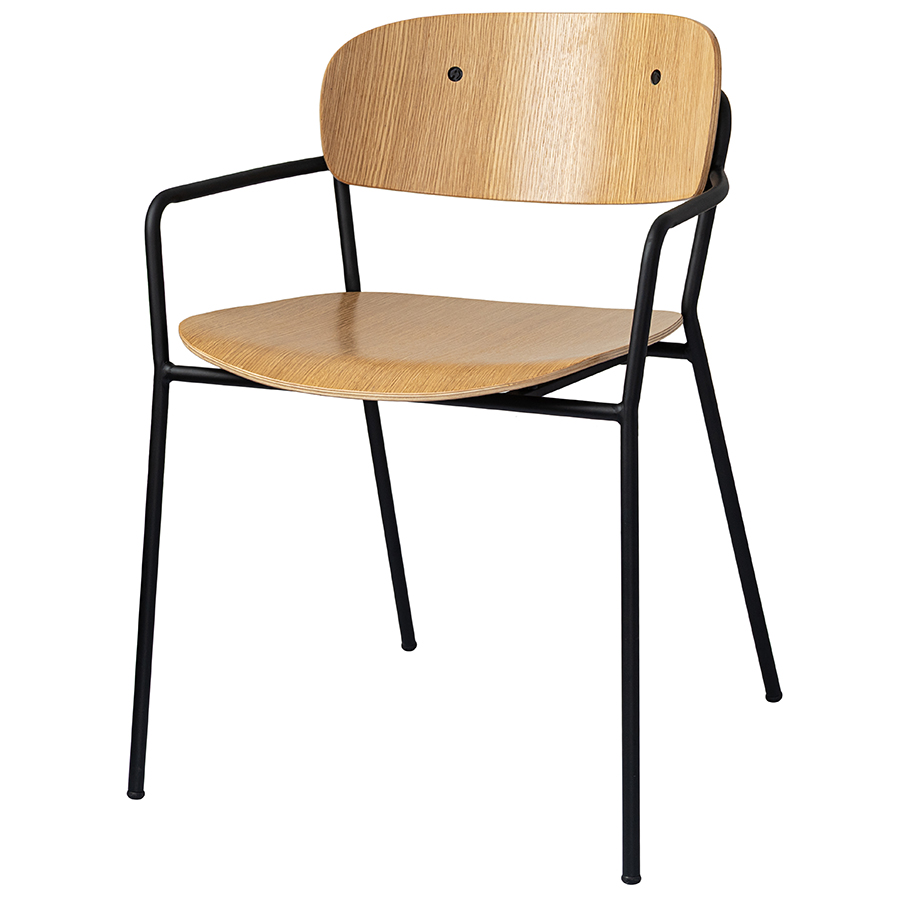 Материалы: фанера, шпон ясеня, железо. Высота сиденья: 45 см. Ширина сиденья: 45,5 см. Глубина сиденья: 42,5 см. Высота спинки: 31,5 см. Ширина спинки: 46 см. Высота подлокотников: 15 см. Максимальная нагрузка: 120 кг. Цвет: светлый орех.