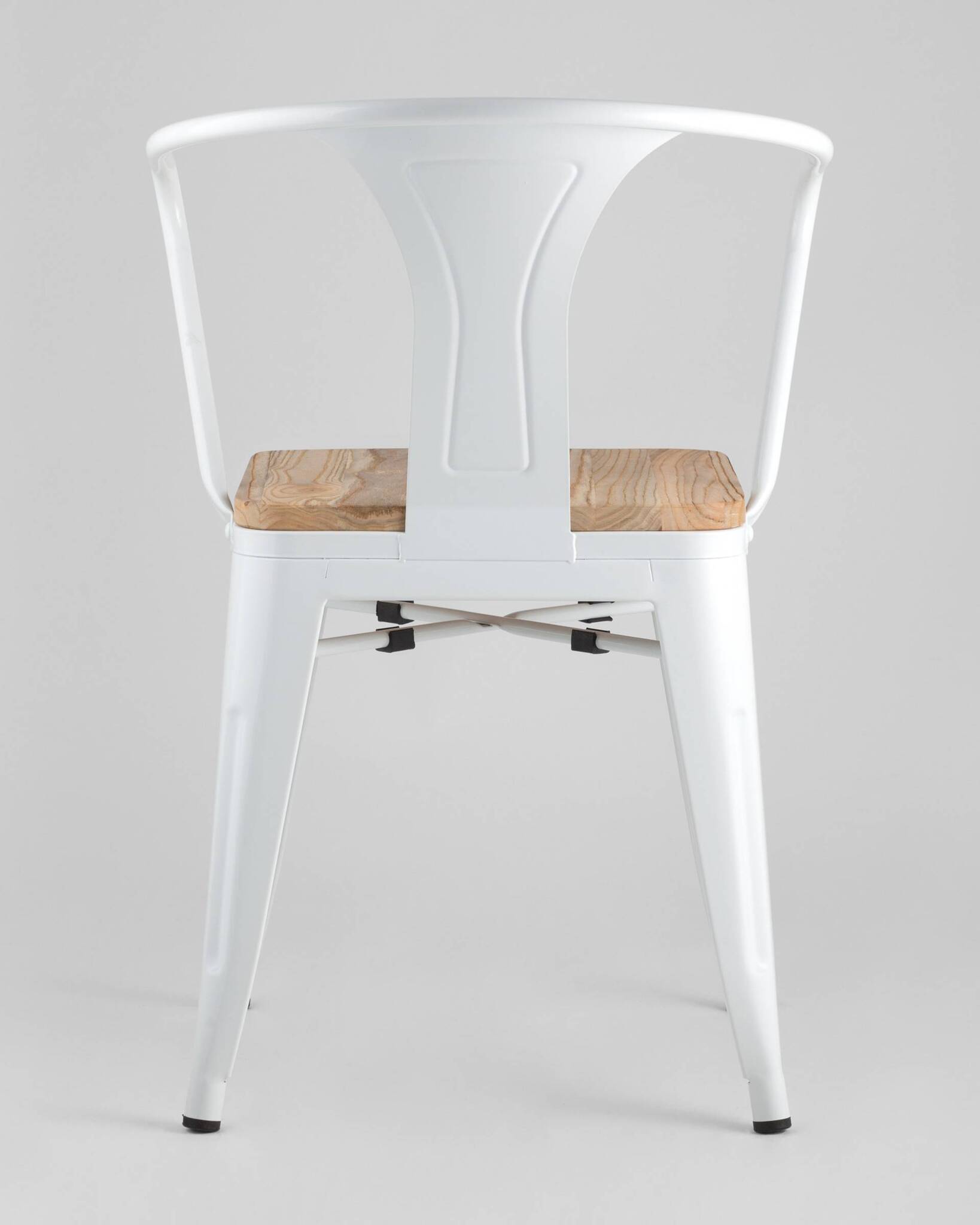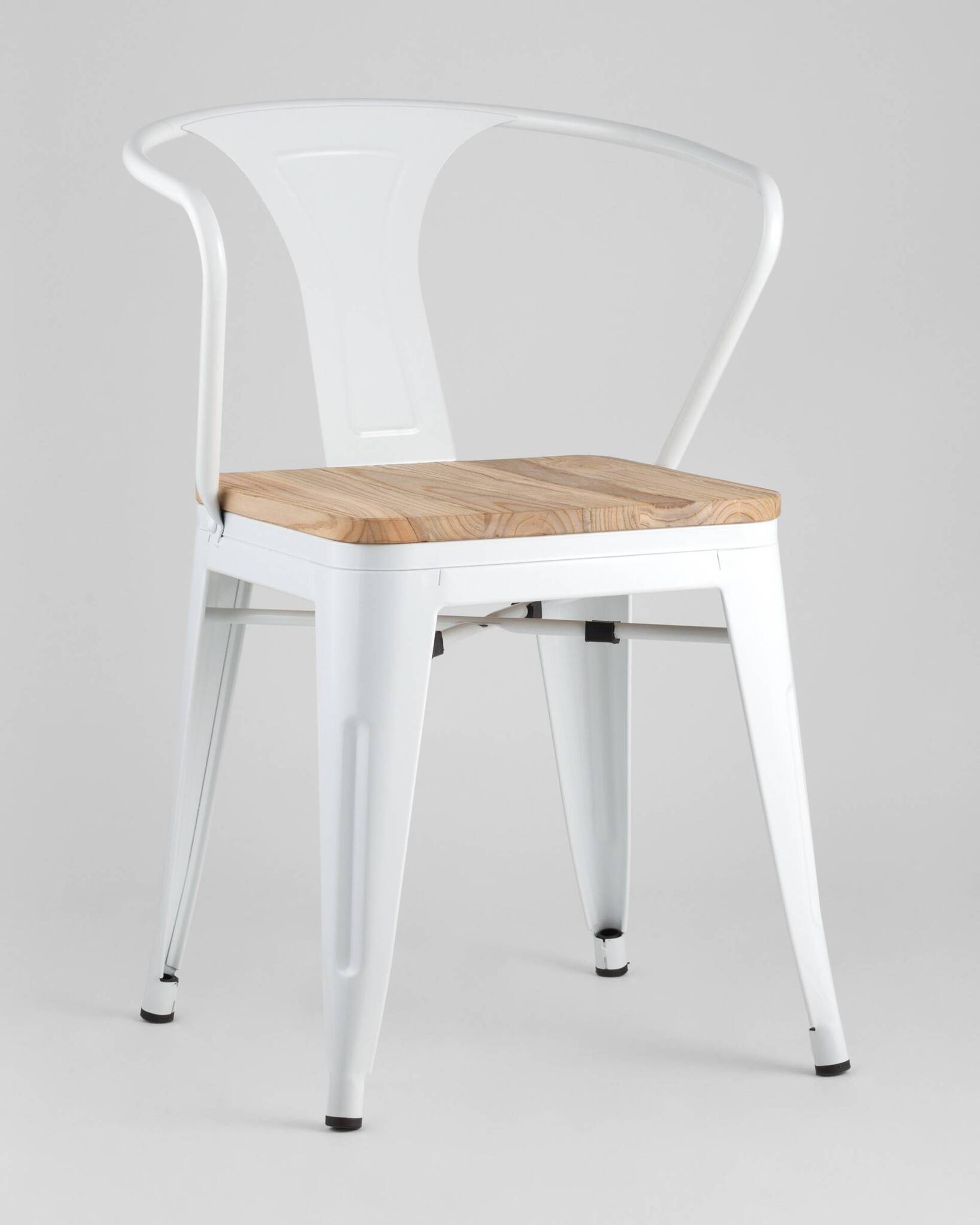 Стул Stool Group TOLIX с подлокотниками белый матовый + светлое дерево, металлическое основание, оцинкованный металл с порошковым напылением, сиденье из натурального дерева