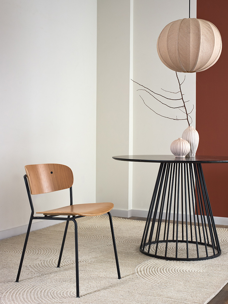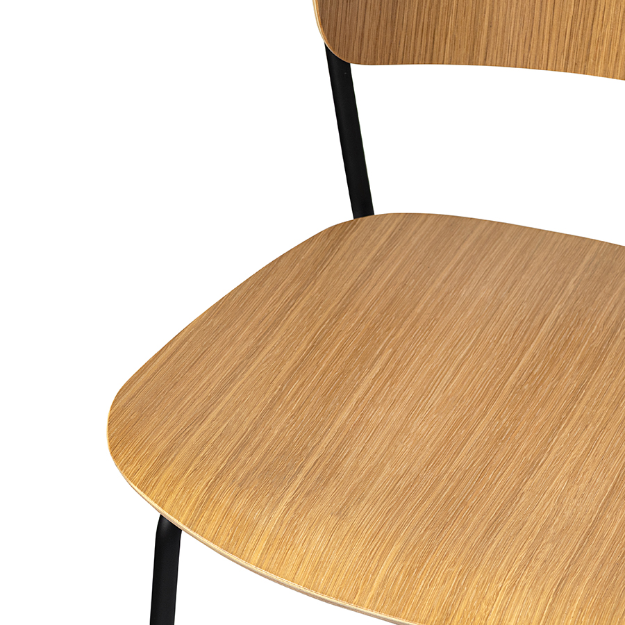 - Спинка и сиденье из шпонированной фанеры не боятся механических повреждений, воздействия влаги, температурных перепадов и деформации, обеспечивают стулу привлекательный вид.