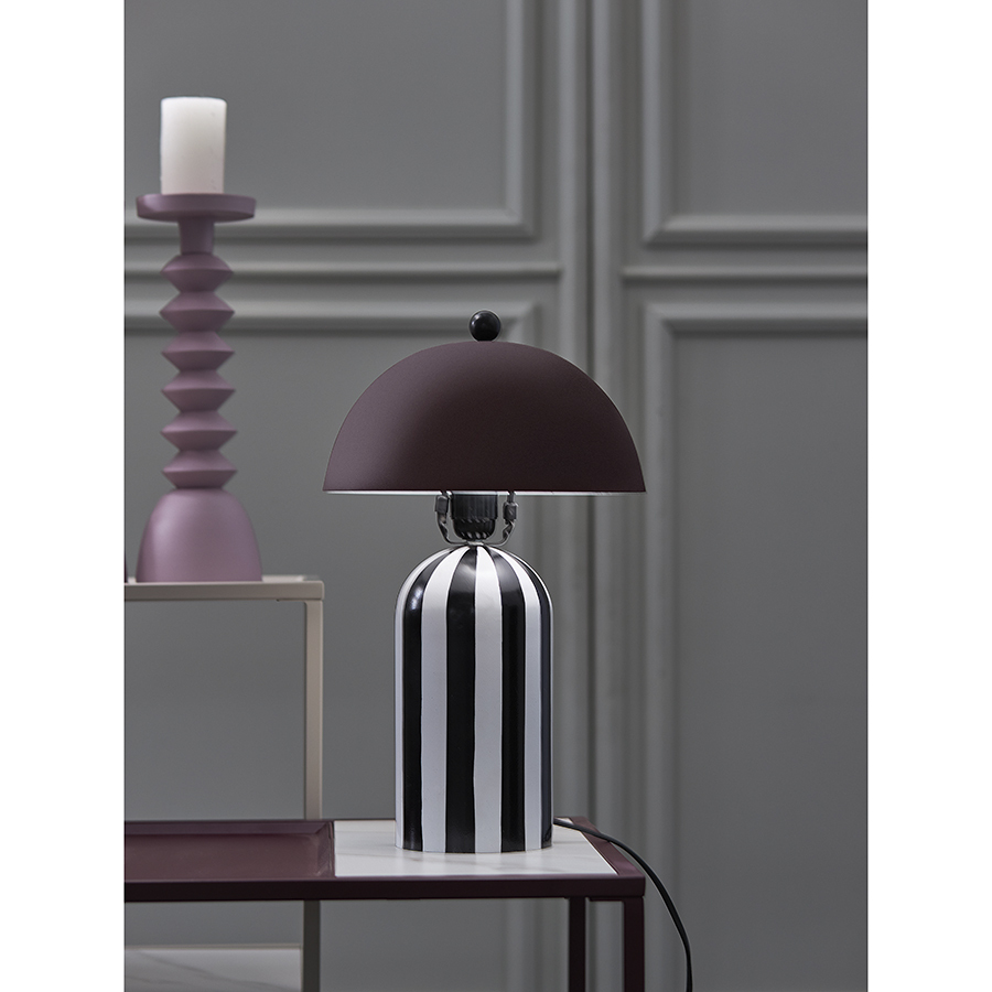 Материал: железо. Размеры: 25х25х38 см. Цвет: черный/белый/сливовый. Тип цоколя: Е27. Степень пылевлагозащиты: IP20. Максимальная мощность ламп: 25 Вт. Напряжение: 220-240 В. Длина провода: 2,5 м. Переключатель: встроенный. Площадь освещения: 1,7 кв.м. Лампы в комплекте: нет.