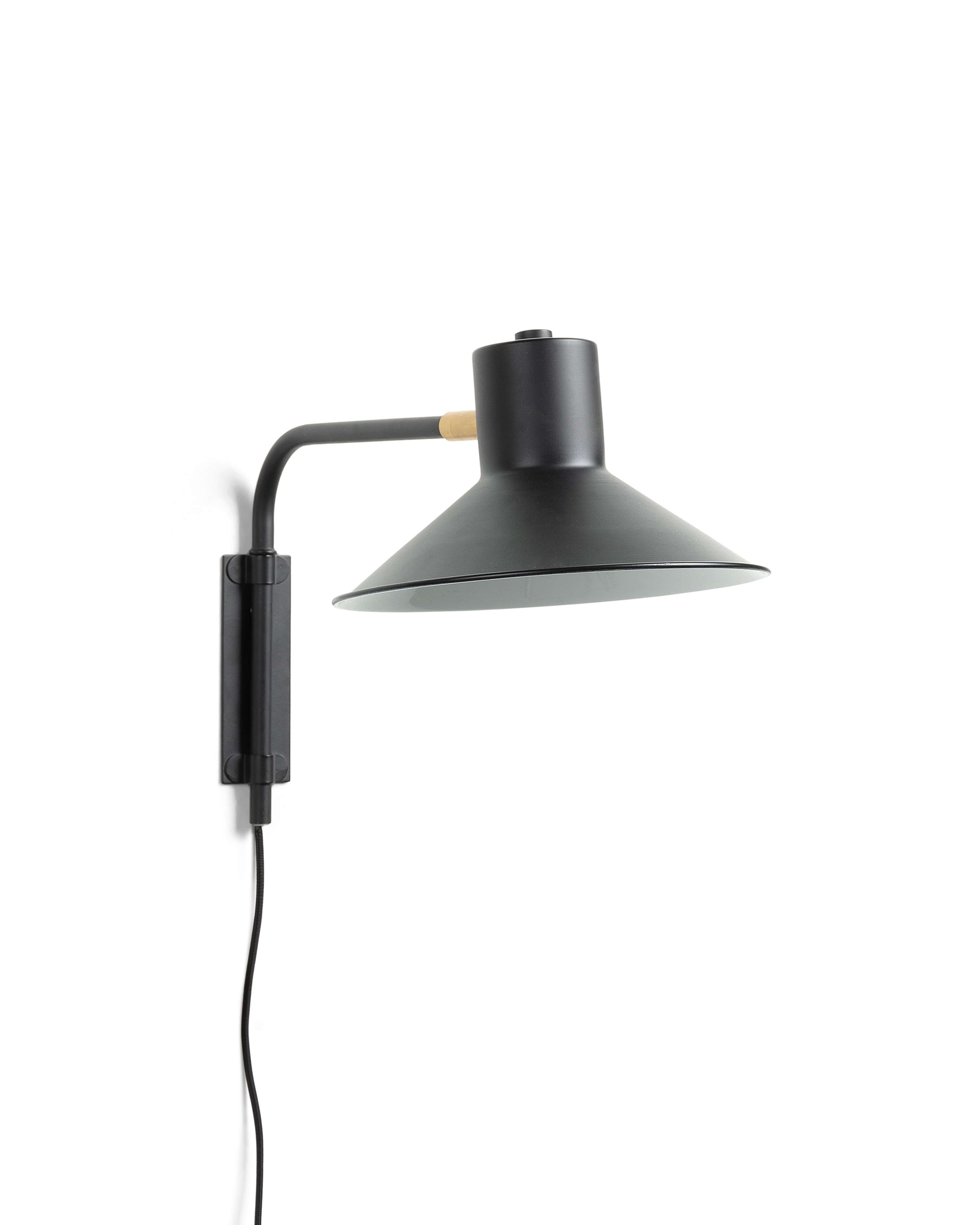 Настенный светильник с металлическим кронштейном и абажуром с деталью из настоящей латуни. Подходит для лампы E14, которая не входит в комплект.