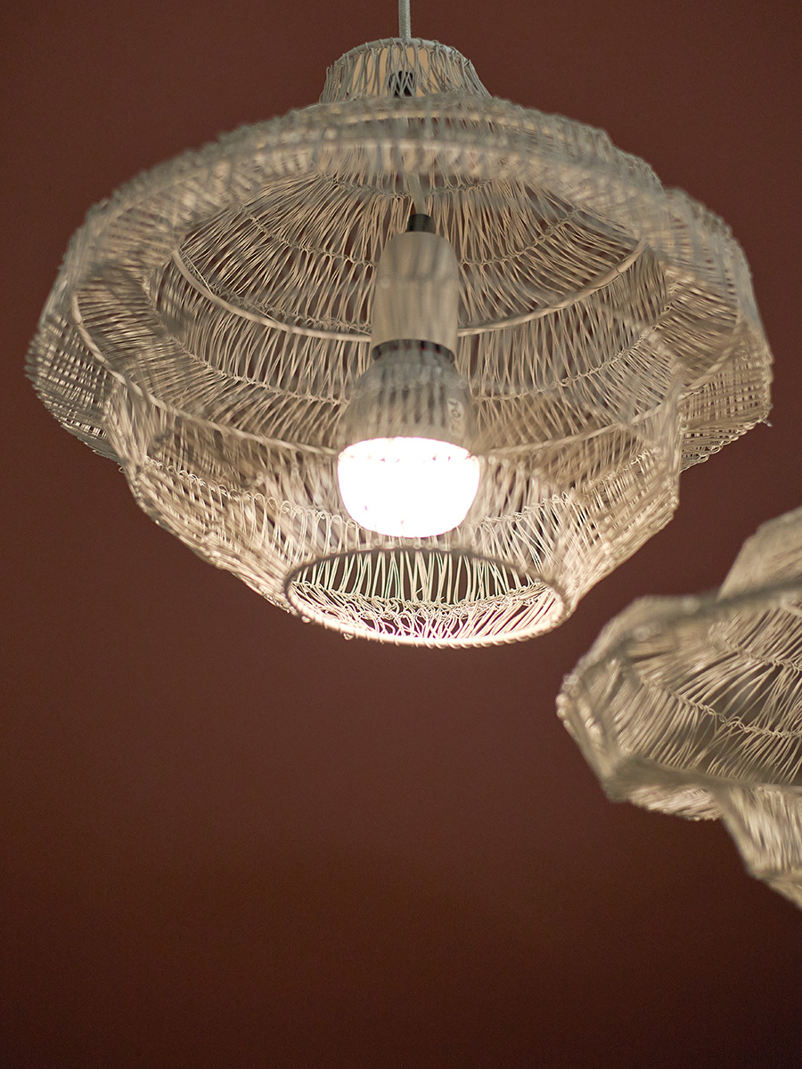 - Светильник с абажуром из железной сетки смотрится необычно и идеально подходит в качестве акцентного элемента.