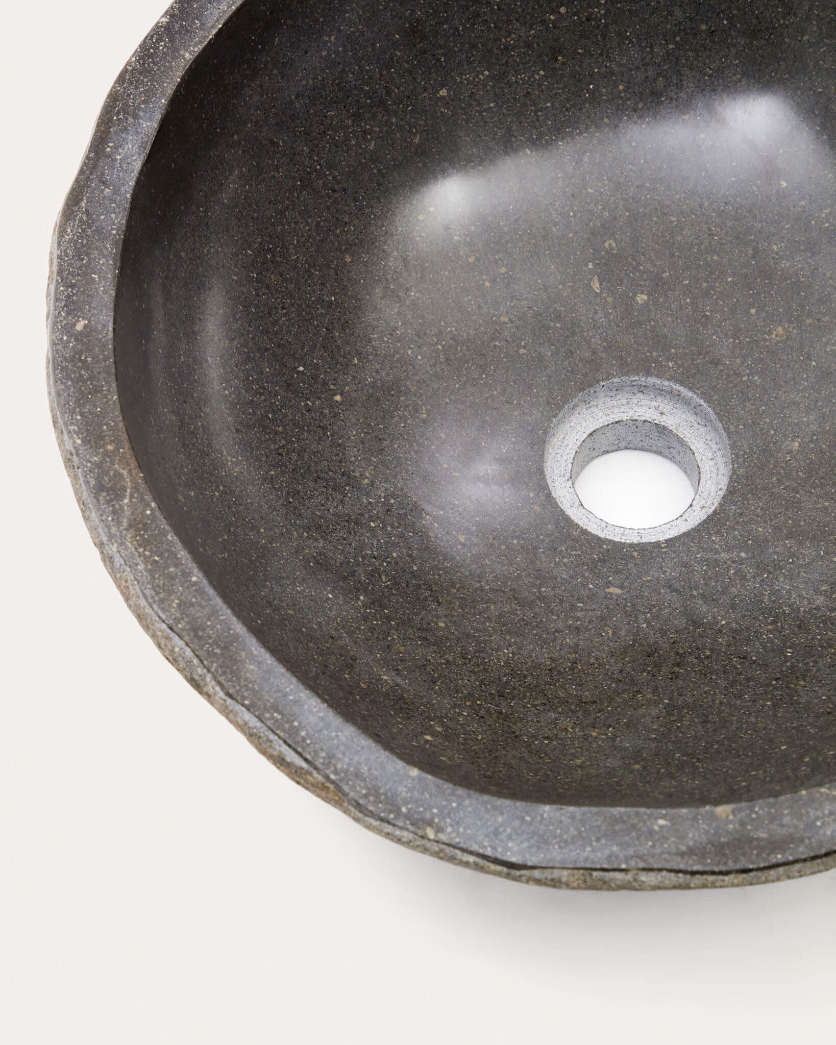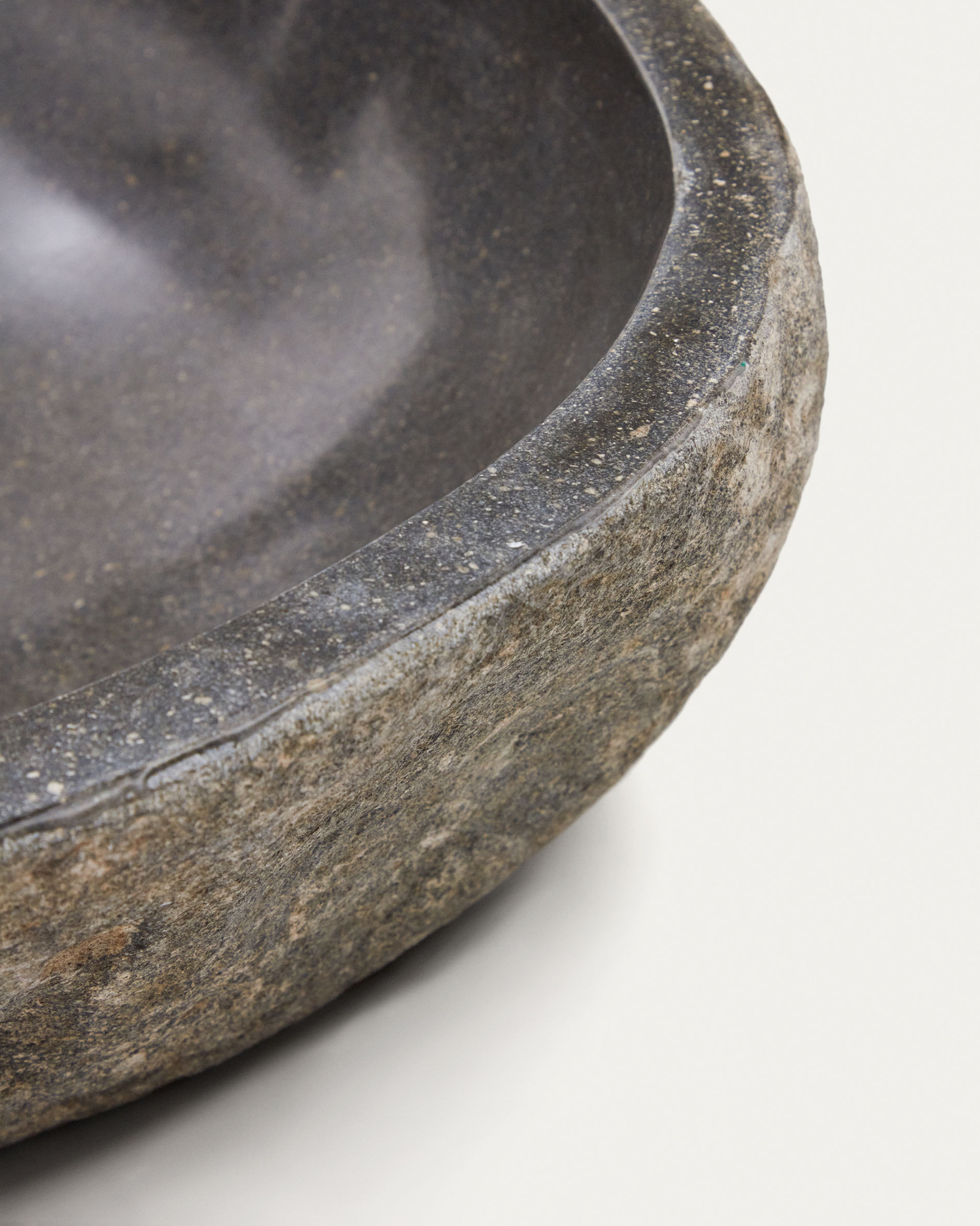 Умывальник из галечного камня. Переносит влажность и обладает высокой устойчивостью. Подходит к коллекции мебели для ванных комнат Kenta.