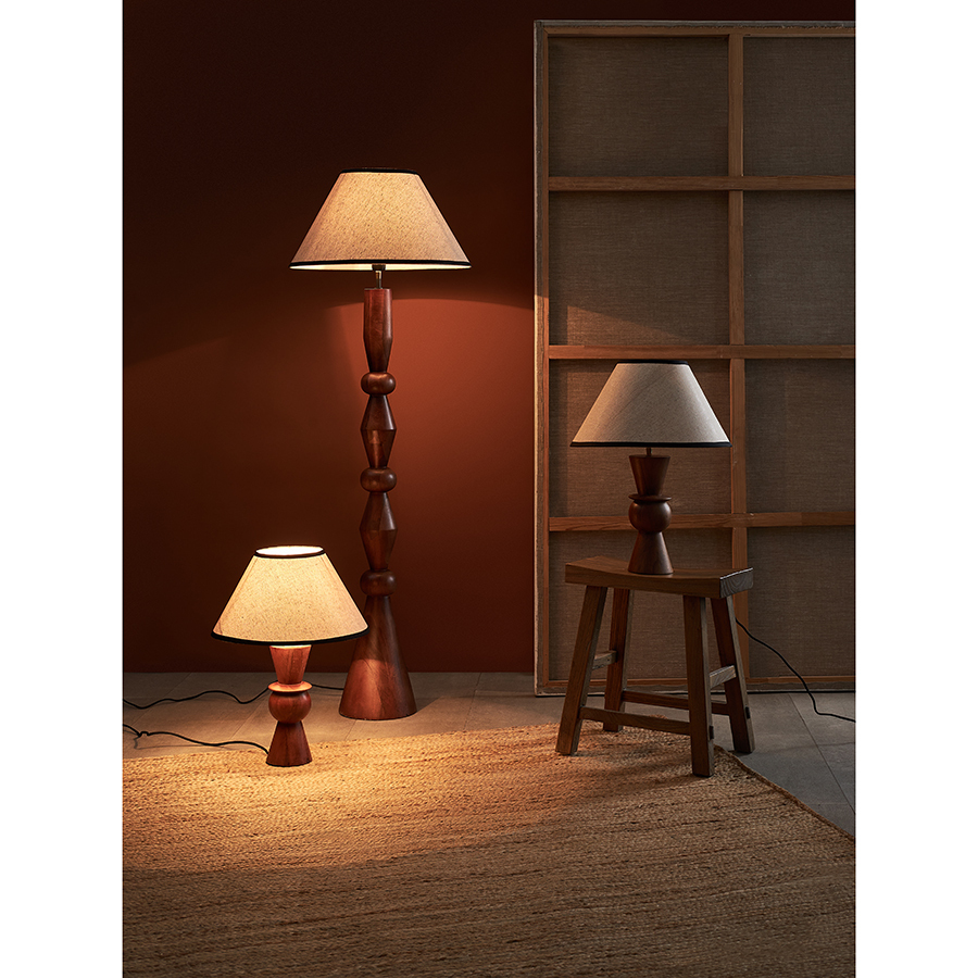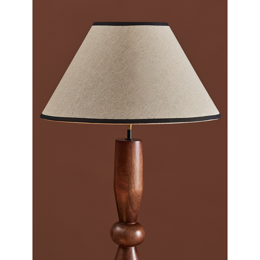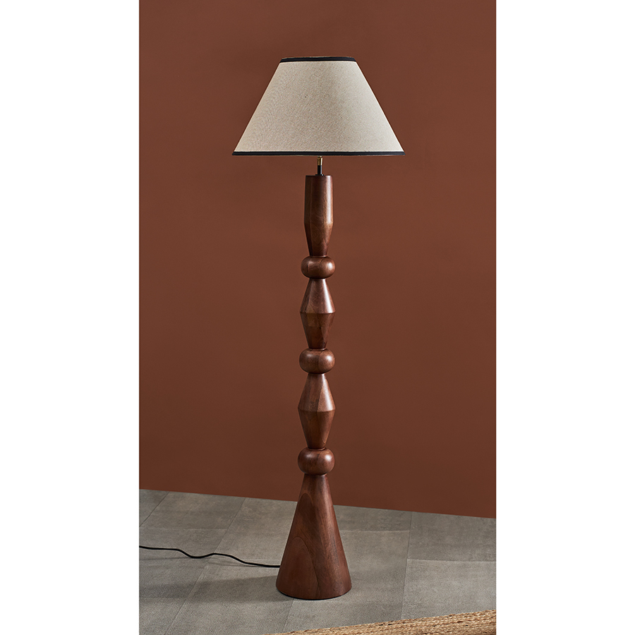 Материал: основание – дерево манго, абажур – 50% лен, 50% джут. Диаметр основания: 22 см. Диаметр абажура: низ – 50 см, верх – 19 см. Высота абажура: 30 см. Высота светильника: 153 см. Цвет: бежевый. Тип цоколя: Е27. Максимальная мощность лампы: 40 Вт. Степень пылевлагозащиты: IP20. Переключатель: ножной. Длина провода: 3,5 м. Лампы в комплекте: нет.