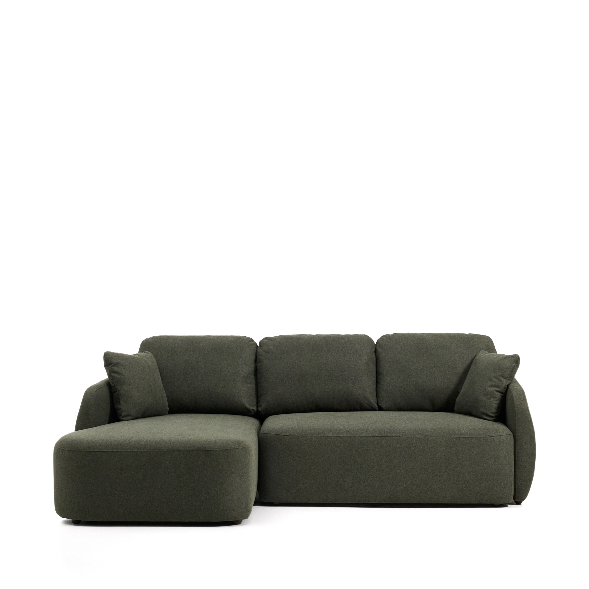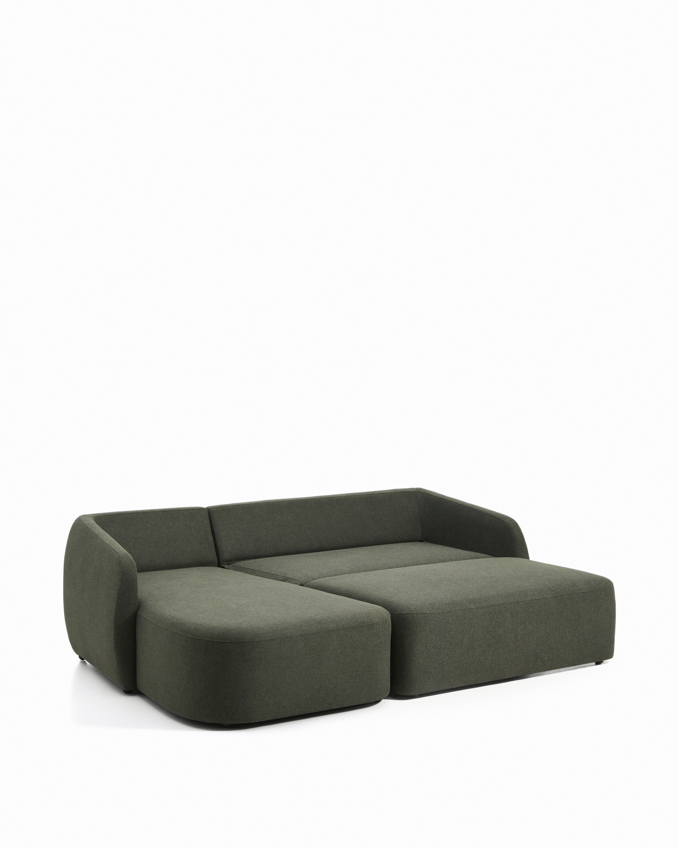 Трехместный диван-кровать Laira с левым шезлонгом из темно-зеленого шенилла 246 см