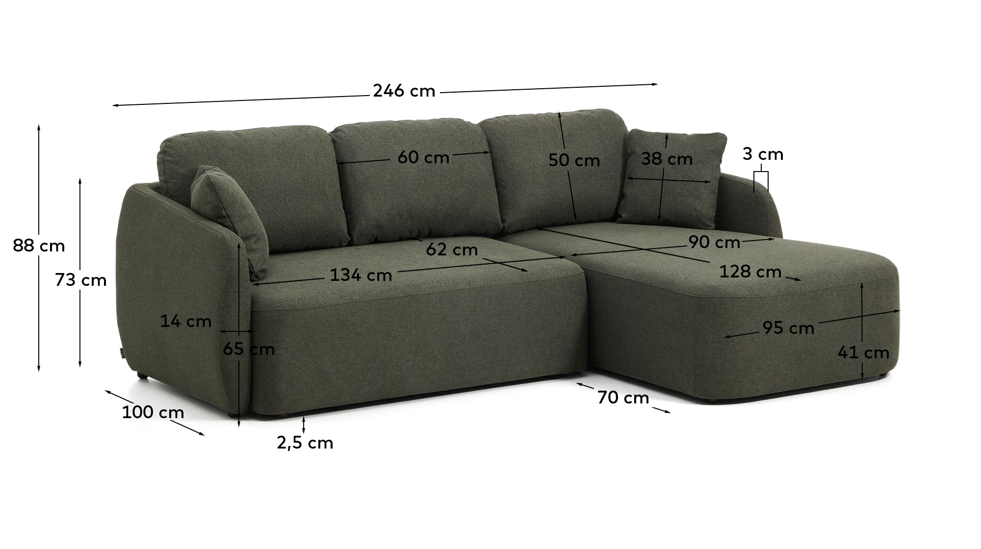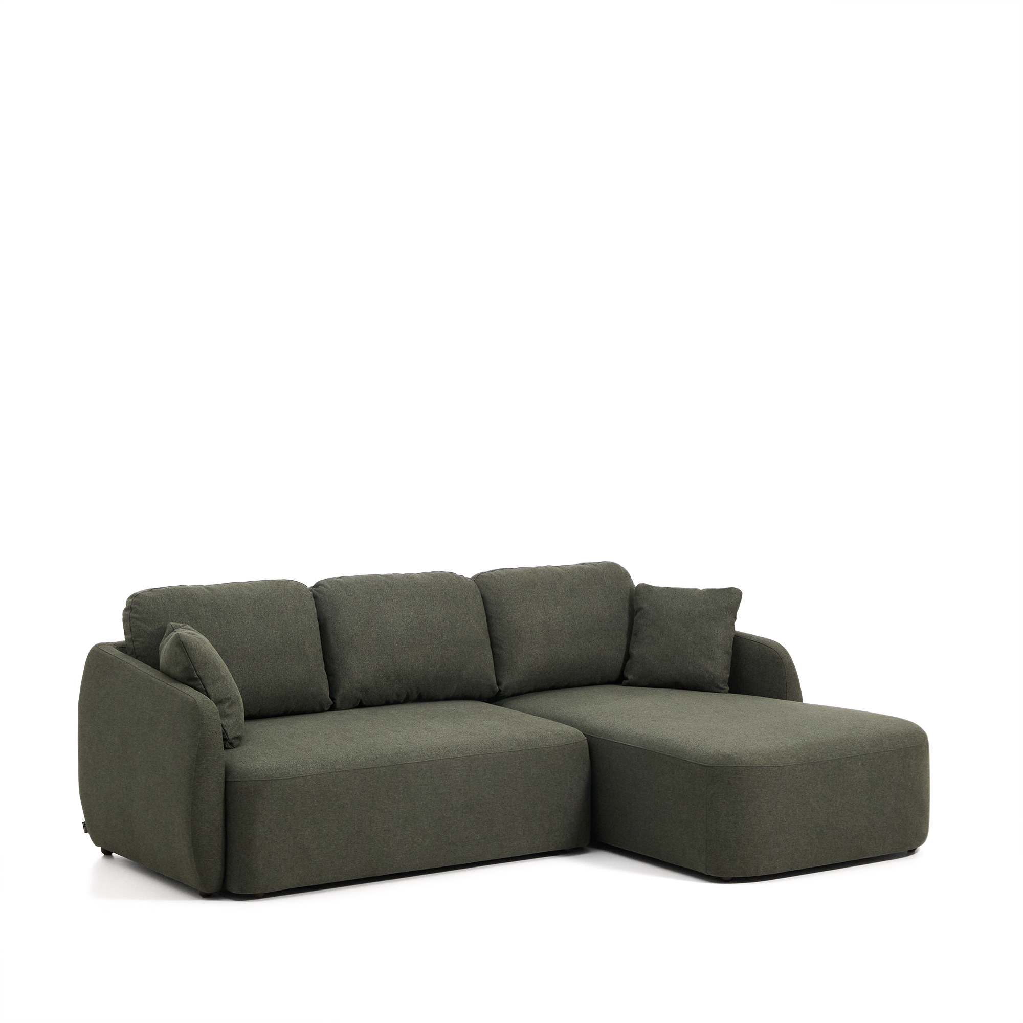 Диван-кровать Laira выделяется своей обивкой из высококачественного, крупнозернистого шенилла, очень мягкого на ощупь и износостойкого. Система Y-open позволяет быстро и легко превратить диван в удобную кровать размером 150 x 230 см в самой широкой точке благодаря синхронизированному механизму открывания. В разложенном виде его также можно использовать как сплошной шезлонг. Среднеплотный пенополиуретан 28 кг/м³ обеспечивает среднюю жесткость сиденья, предлагая баланс комфорта и поддержки. Подушки спинки имеют съемные чехлы и наполнены волокном и перфорированным пенополиуретаном, что обеспечивает обволакивающий комфорт. Внутренняя конструкция выполнена из массива сосны и фанеры. Массив сосны сертифицирован по стандарту FSC™ 100% с учетом ответственной модели лесопользования, а фанера сертифицирована по стандарту FSC Mix Credit, то есть это материал, изготовленный из смеси материалов из сертифицированных FSC лесов и древесины, контролируемой FSC.
