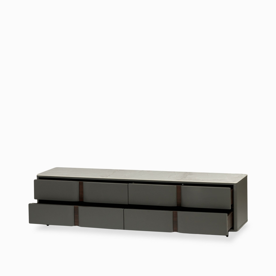 ТВ-тумба Amo – это стильное и функциональное решение для вашей гостиной. Вот её основные характеристики, которые делают её модной и современной:Оптимальные габариты тумбы для большинства современных телевизоров и организации пространства вокруг. Сочетание черной столешницы и серого каркаса создает элегантный и сдержанный образ. Черные ножки добавляют акцент и завершают дизайн.