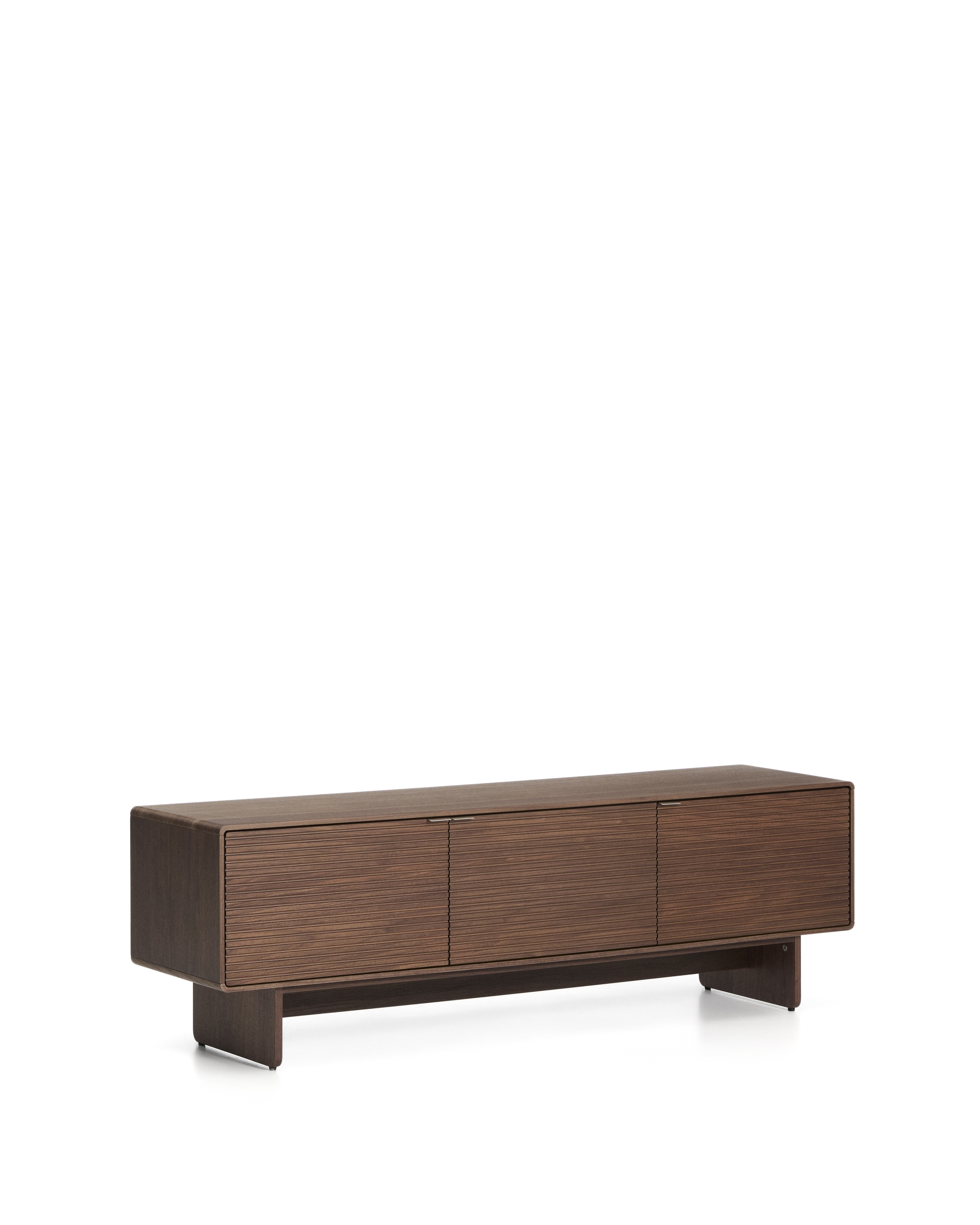 Norlen отдаёт дань уважения дизайну 1950-х годов в современной интерпретации, сочетая минималистичные формы и винтажные детали. Слегка закруглённые углы и деревянное основание создают ностальгическую атмосферу, переосмысленную благодаря чистым линиям и современным пропорциям. Тёмный ореховый шпон, нанесённый методом вакуумной мембранной печати, идеально подходит к радиусам мебели, объединяя отделку и придавая глубину и индивидуальность каждому предмету. Он покрыт полиуретановым лаком, обеспечивающим устойчивость к износу и влаге.