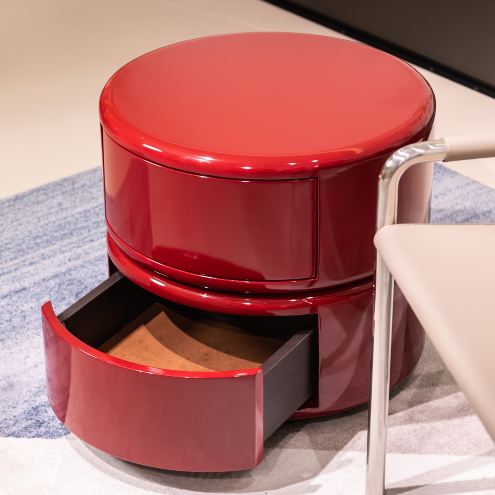 Тумба выполнена из МДФ и покрыта глянцевым лаком.