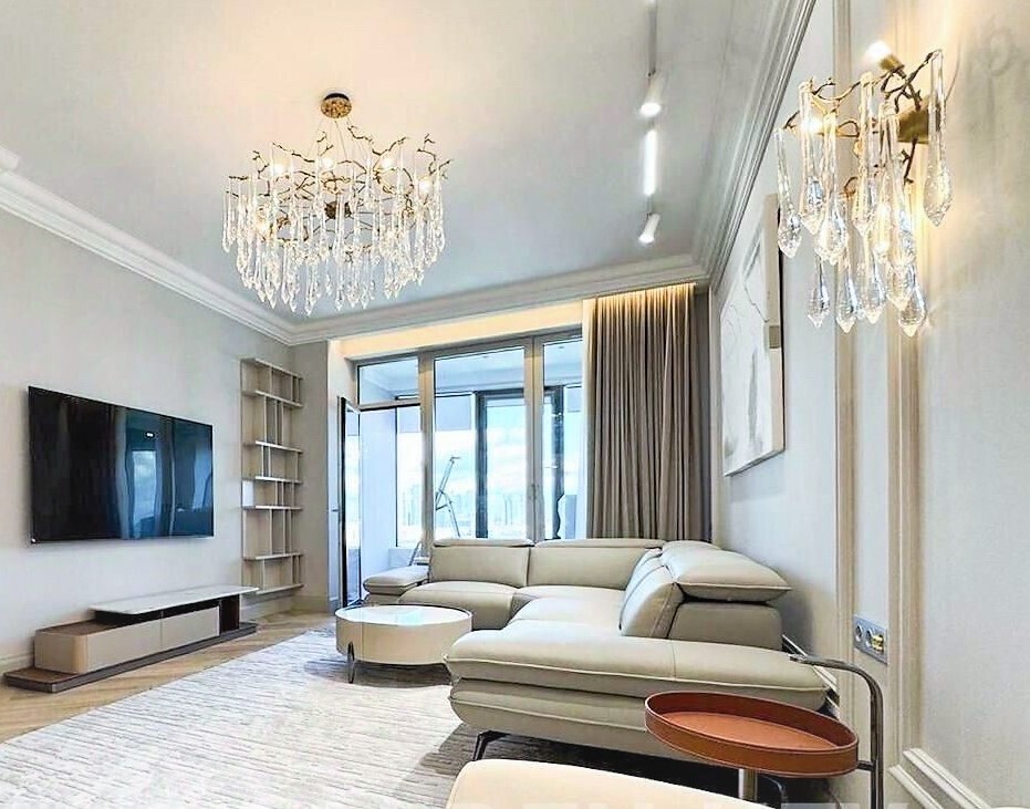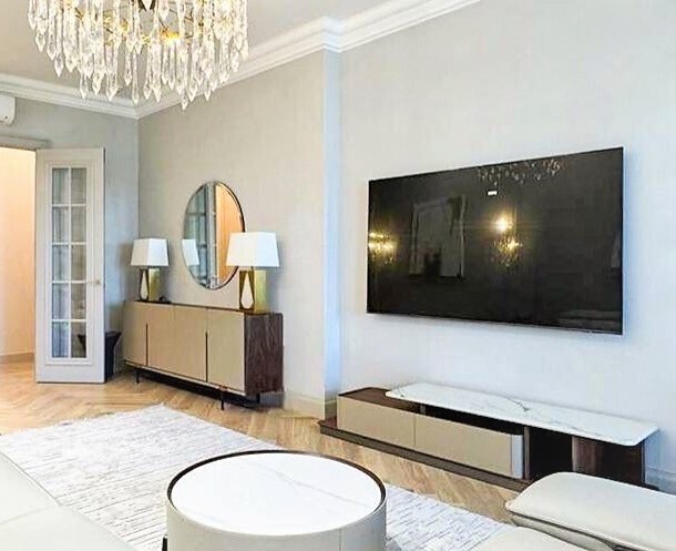 Столешница выполнена из прочного и износоустойчивого керамогранита; поверхность глянцевая с рисунком Calacatta Borghini.
