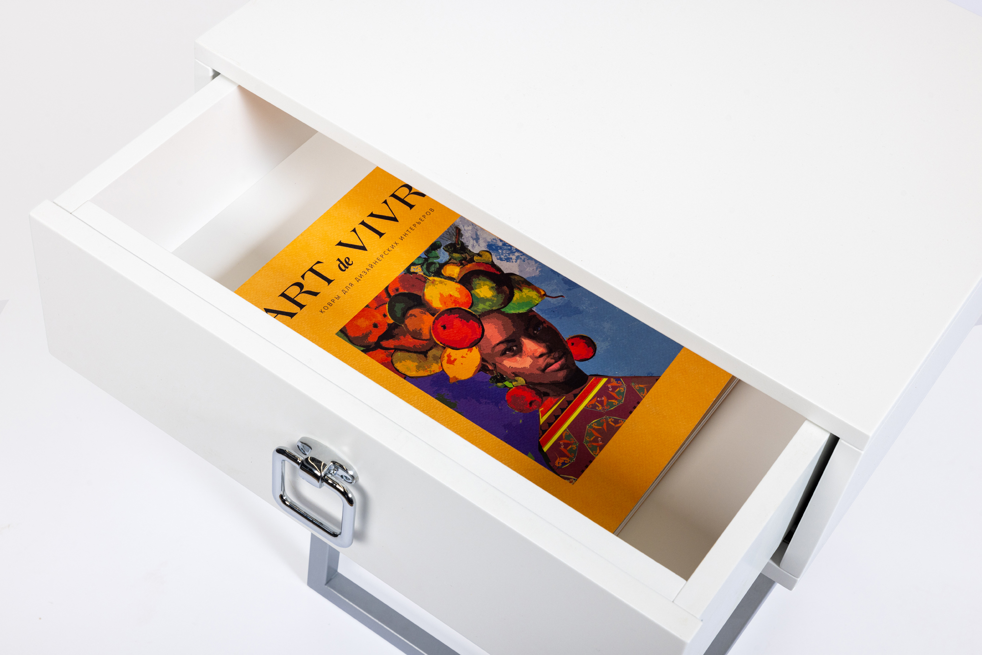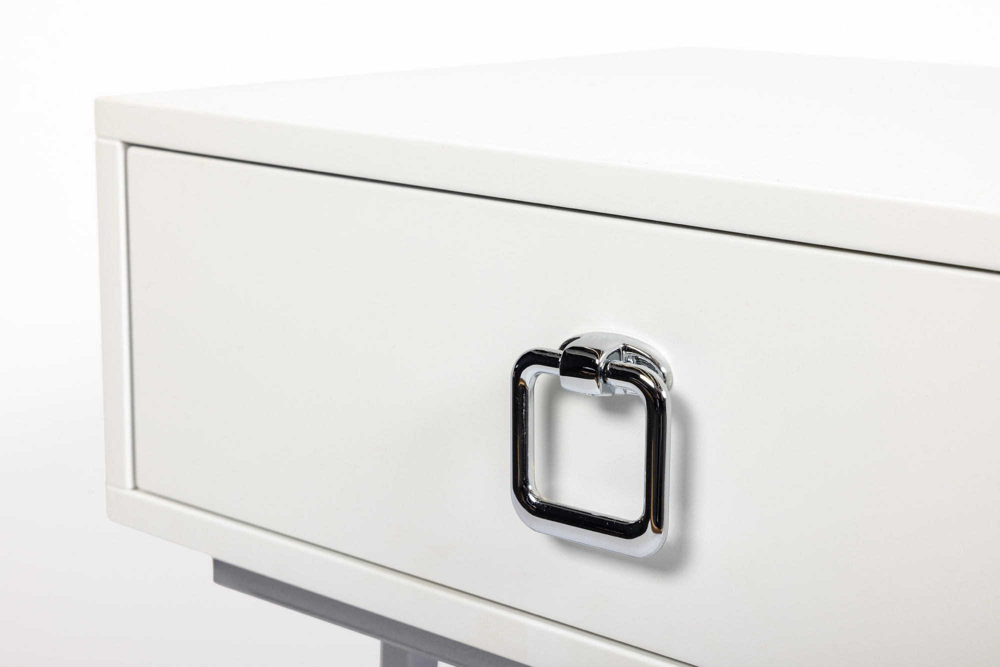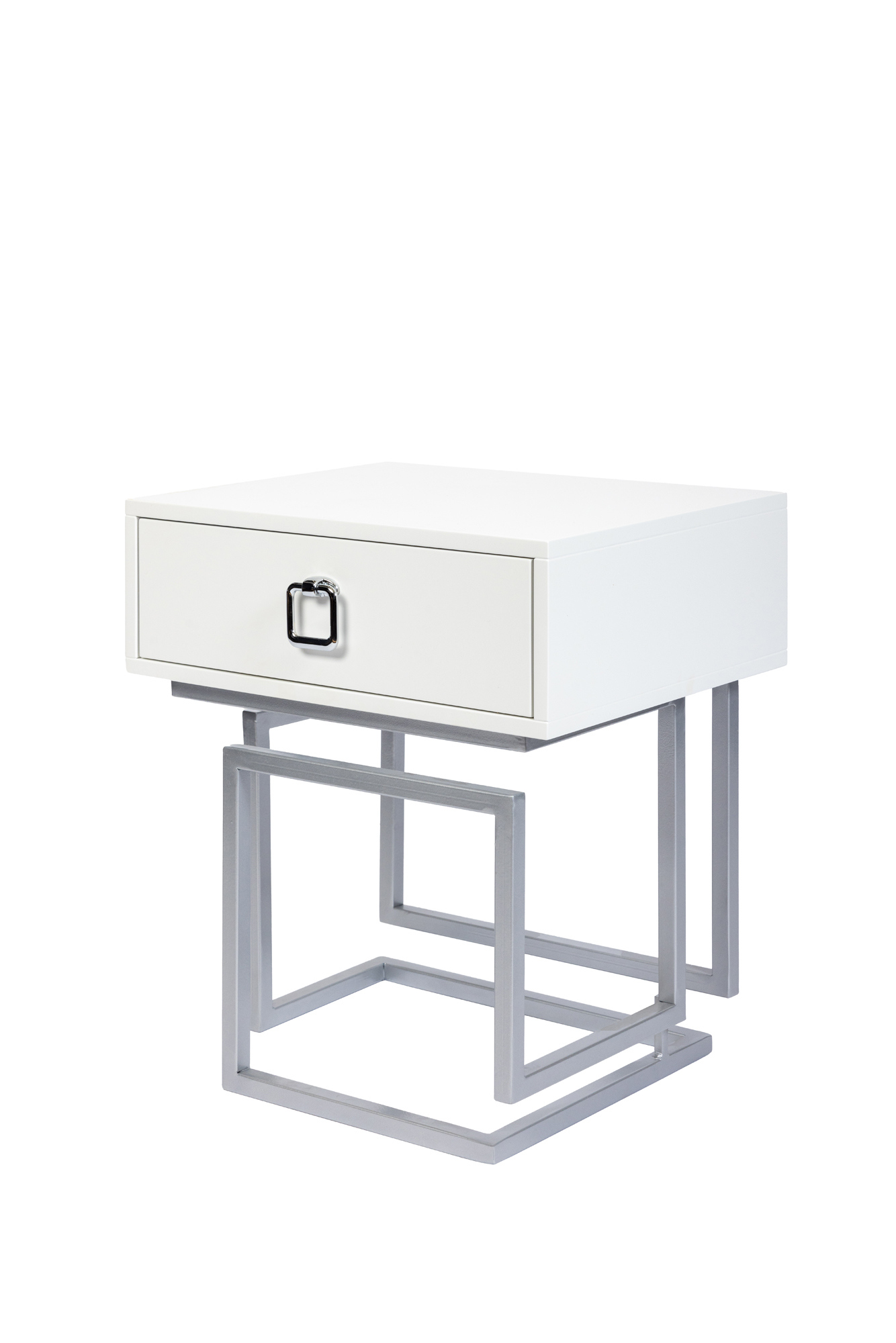 Дизайнерская прикроватная тумба из лимитированной коллекции Esthetic. Выполнена в современном стиле, вместо традиционных ножек – металлическая рама необычной формы. Ящик белого цвета оснащен доводчиком и украшен хромированной ручкой, придающей изделию дополнительный шарм. Визуально легкая, эффектная, устойчивая и практичная, модель станет настоящим украшением вашей спальни. Данную тумбочку мы можем выкрасить по вашему RAL. Также в этой коллекции представлена консоль в аналогичном стиле.