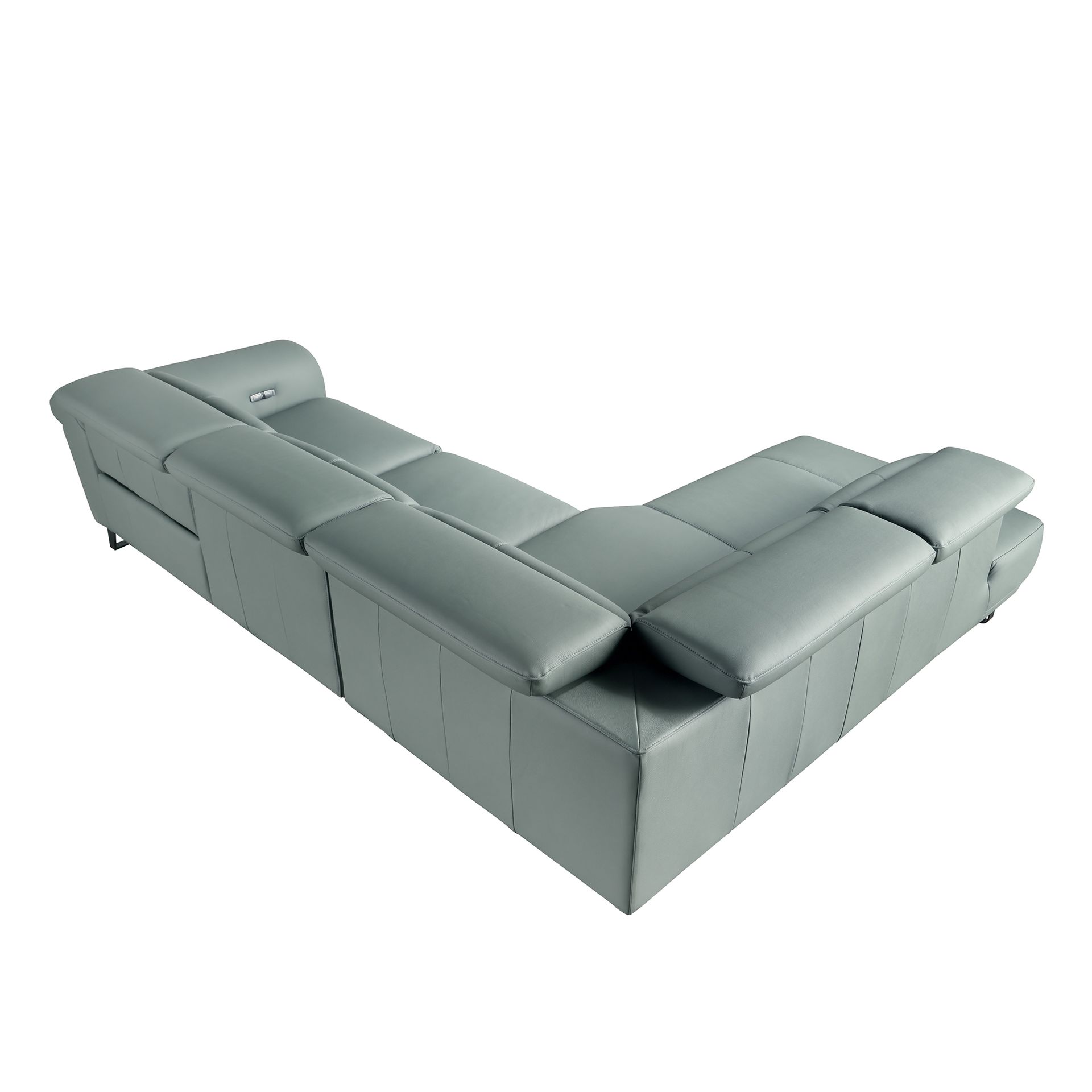 Угловой диван- реклайнер с левым шезлонгом 6251 из бирюзовой кожи