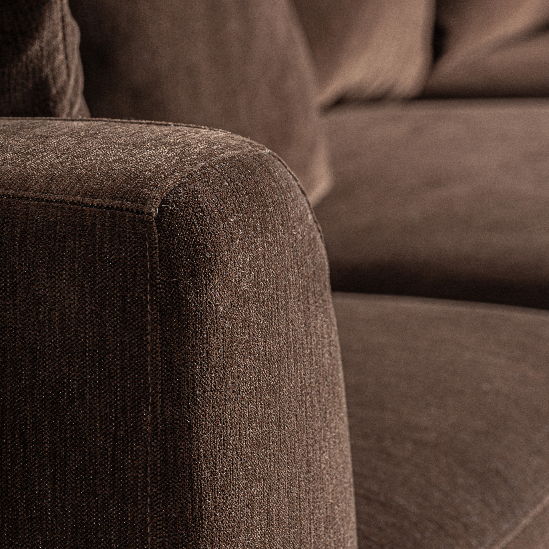 Угловой модуль дивана, изготовлен из полиэстера в сочетании с поролоном и каучуковым деревом черного цвета.