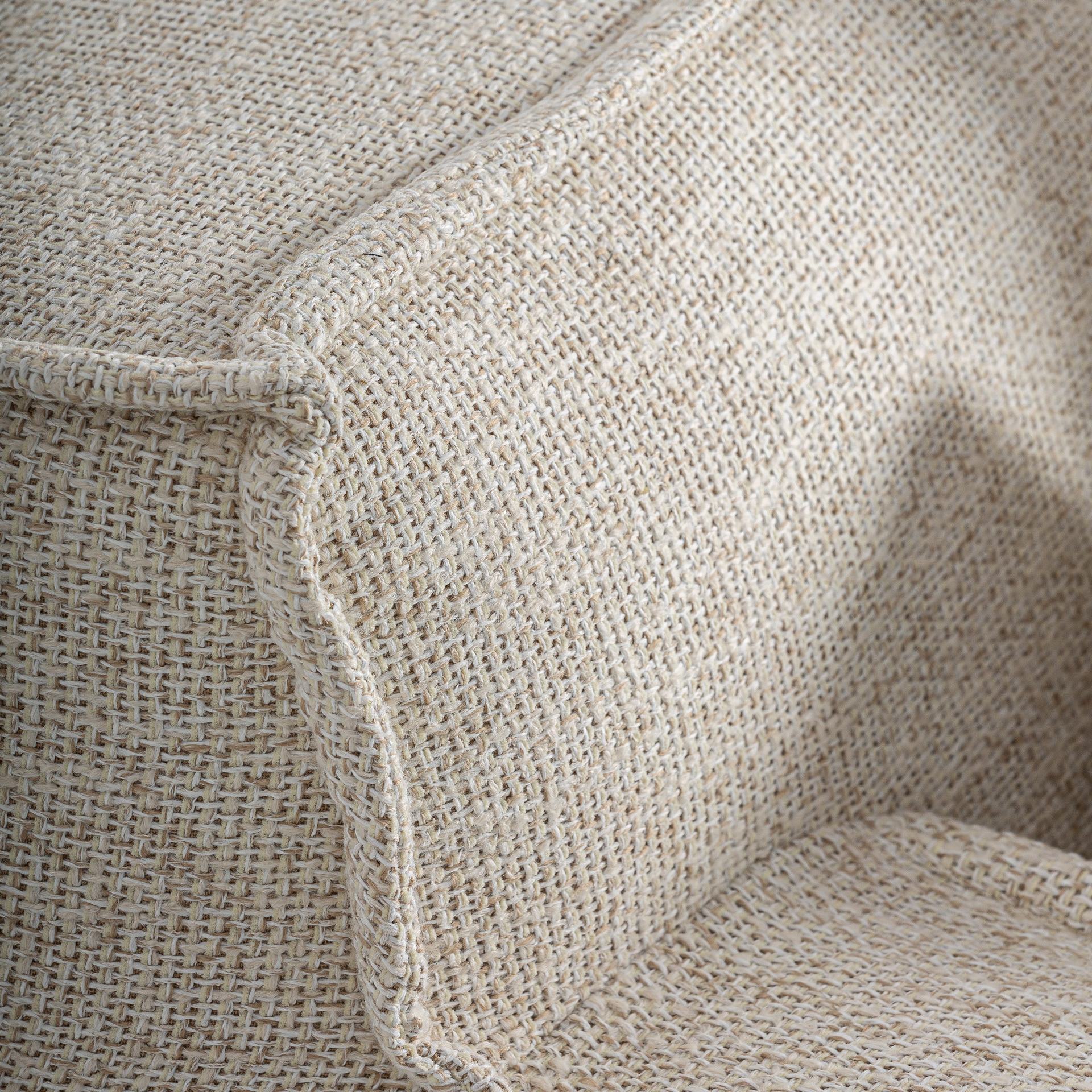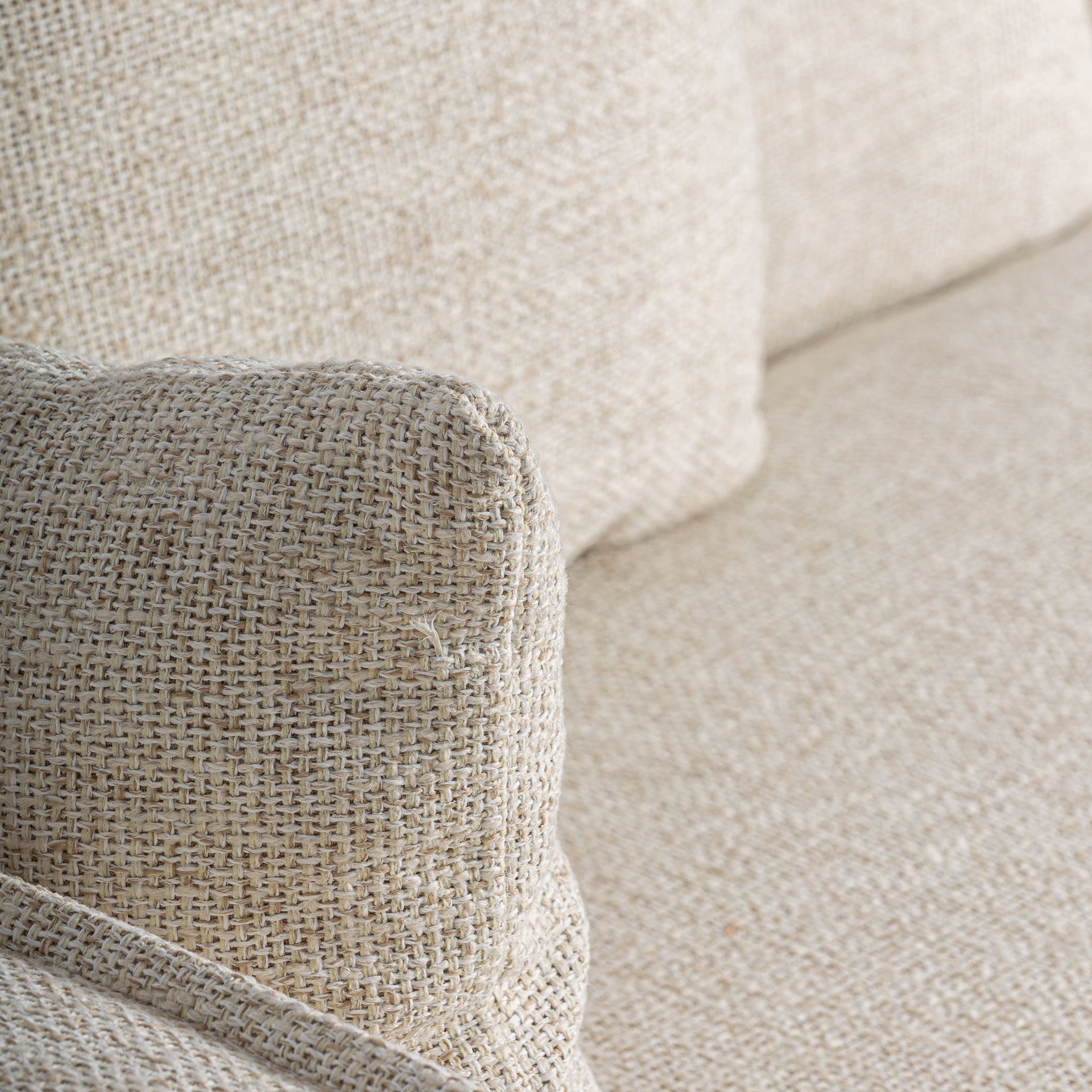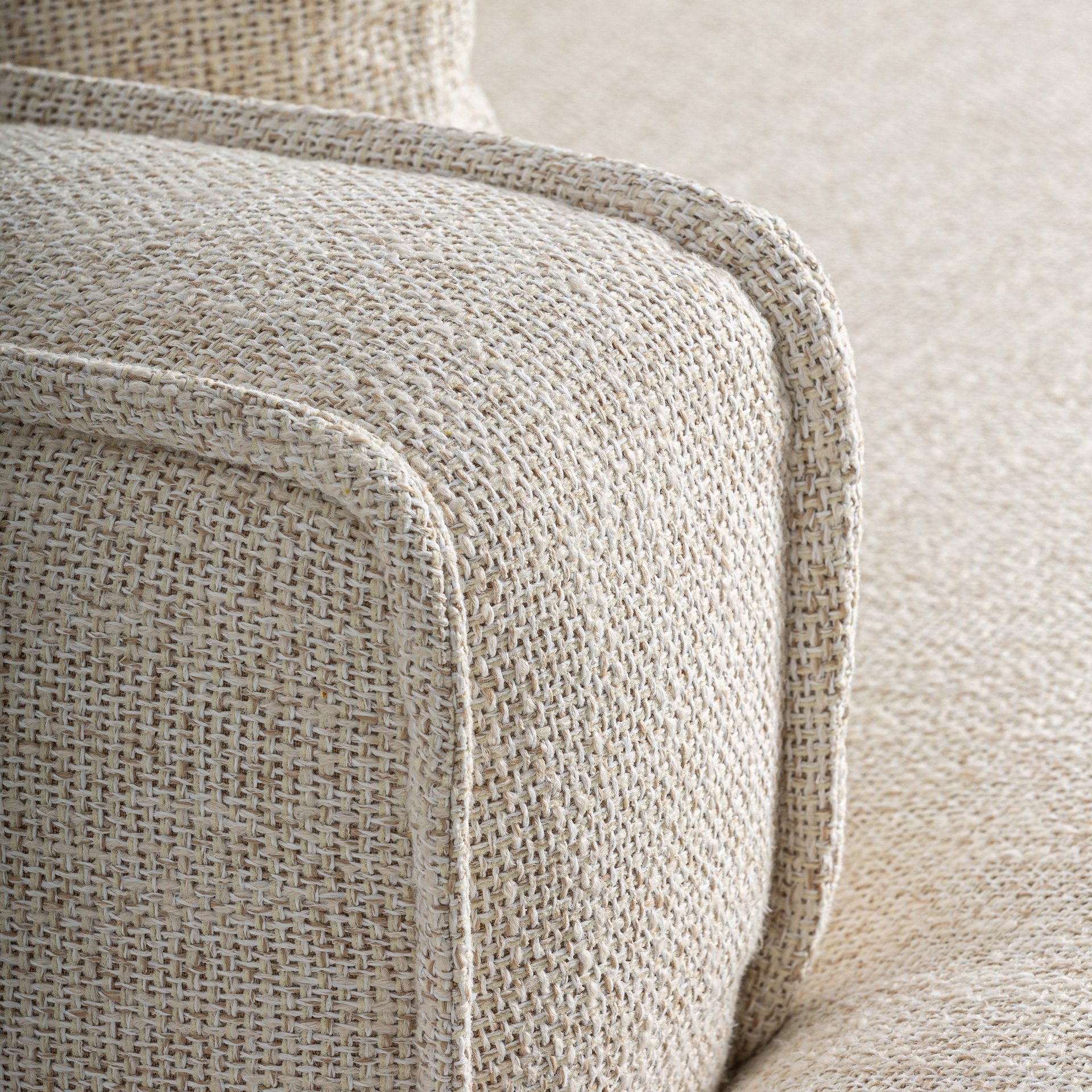 Угловой модуль дивана, изготовлен из полиэстера бежевого цвета в сочетании с поролоном и алюминием.