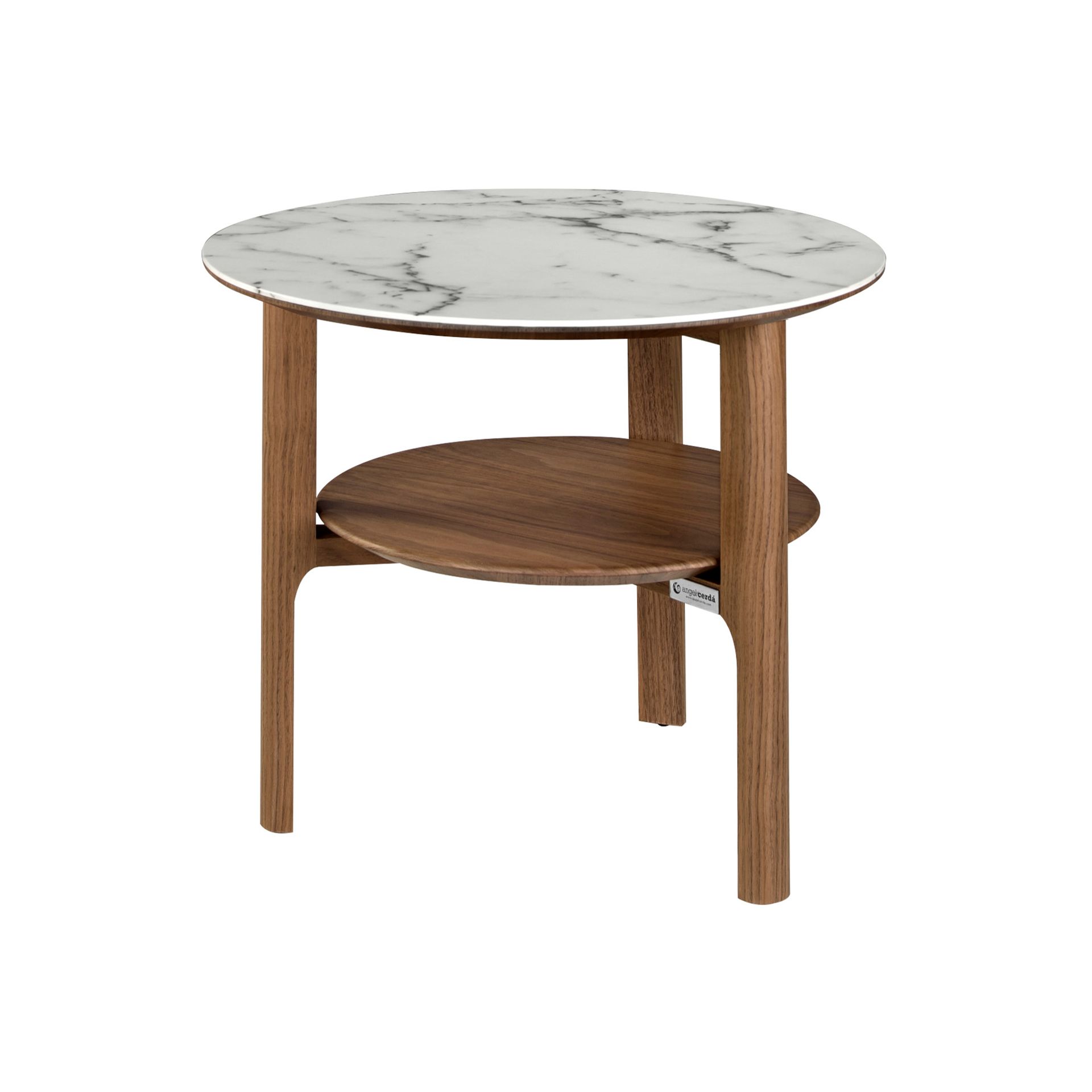 Совместить керамическую столешницу с ореховым деревом – смелый шаг, превращающий рядовое изделие в особенное. Столик сумеет украсить интерьер, в котором приветствуются нестандартные решения, где ценят естественную красоту природных материалов. Столик имеет круглую форму.
