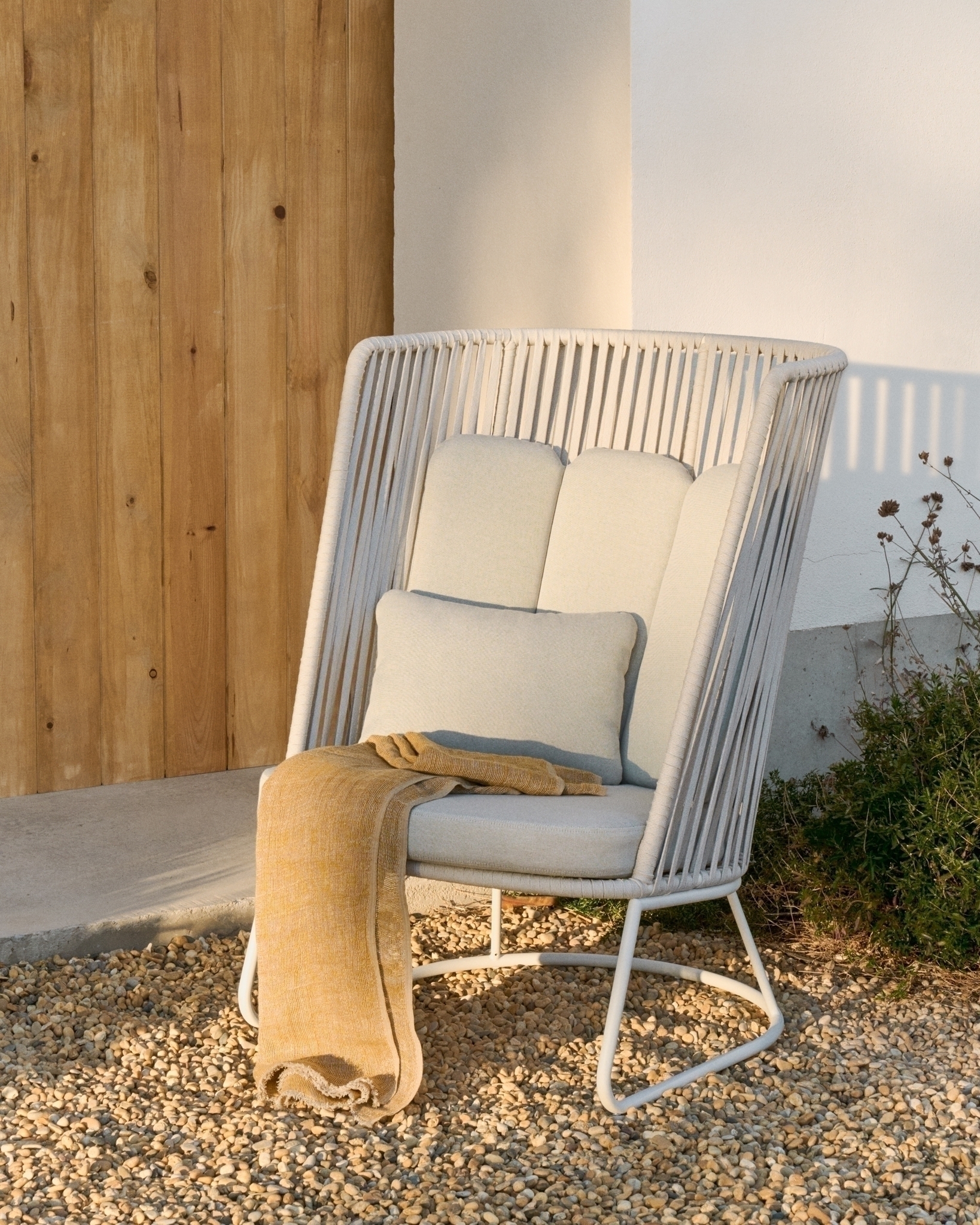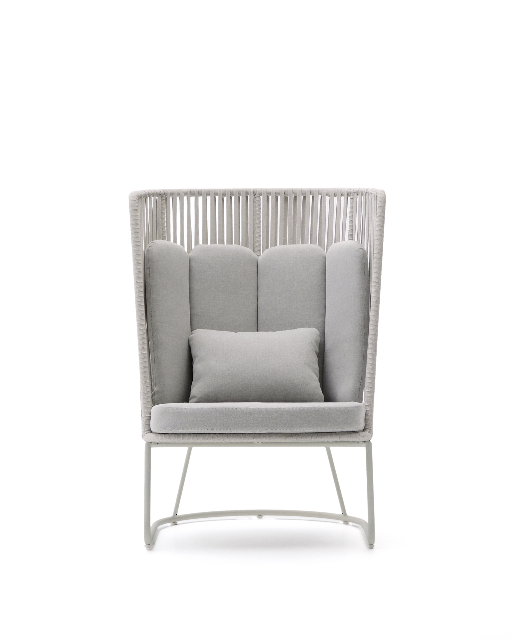 Saconca объединяет элегантность стали с подлинностью плетеного вручную шнура. Эти высококачественные материалы устойчивы к ультрафиолетовому излучению и подходят для использования на открытом воздухе; приглашение создать свое собственное пространство, где элегантность и креативность сливаются воедино.