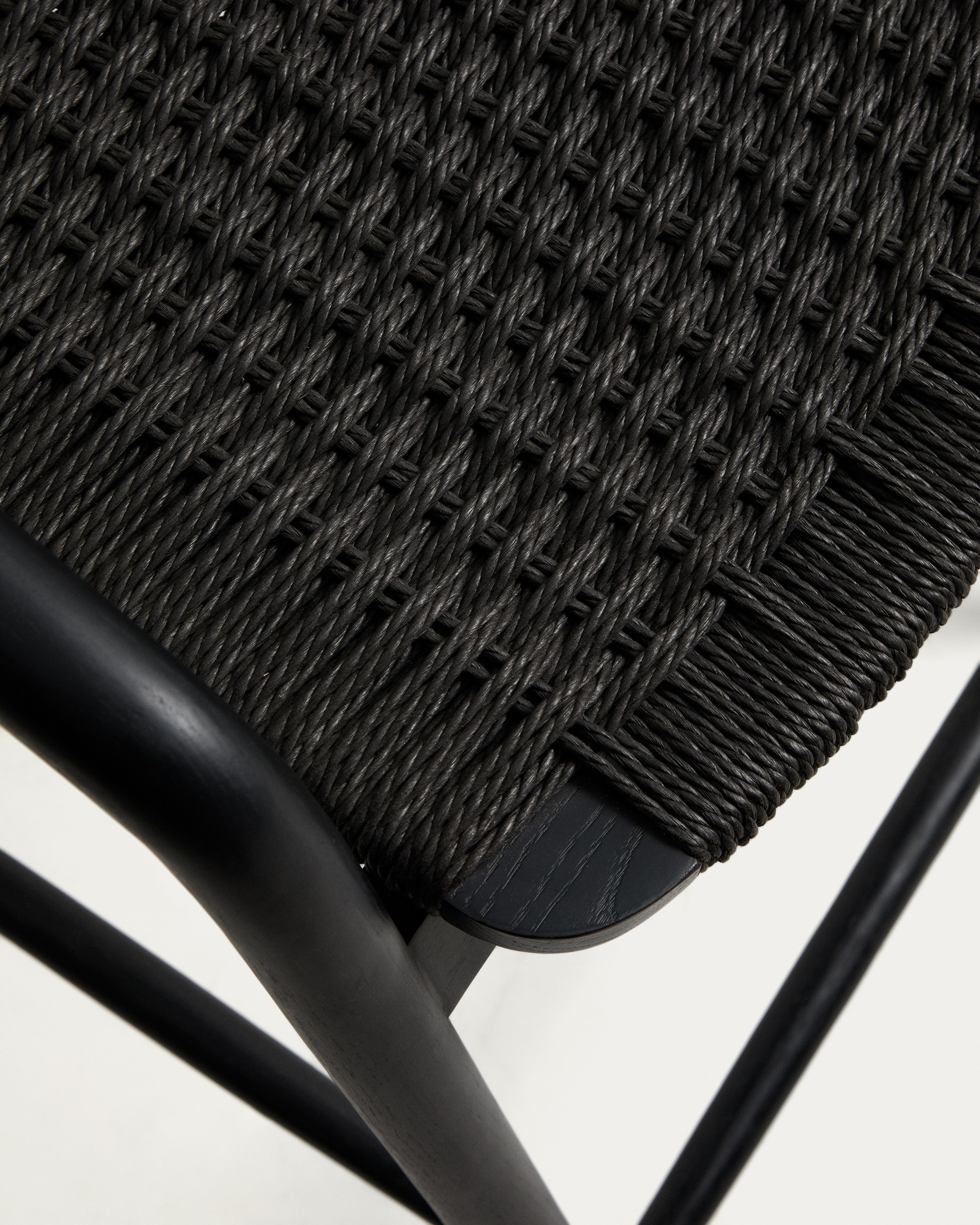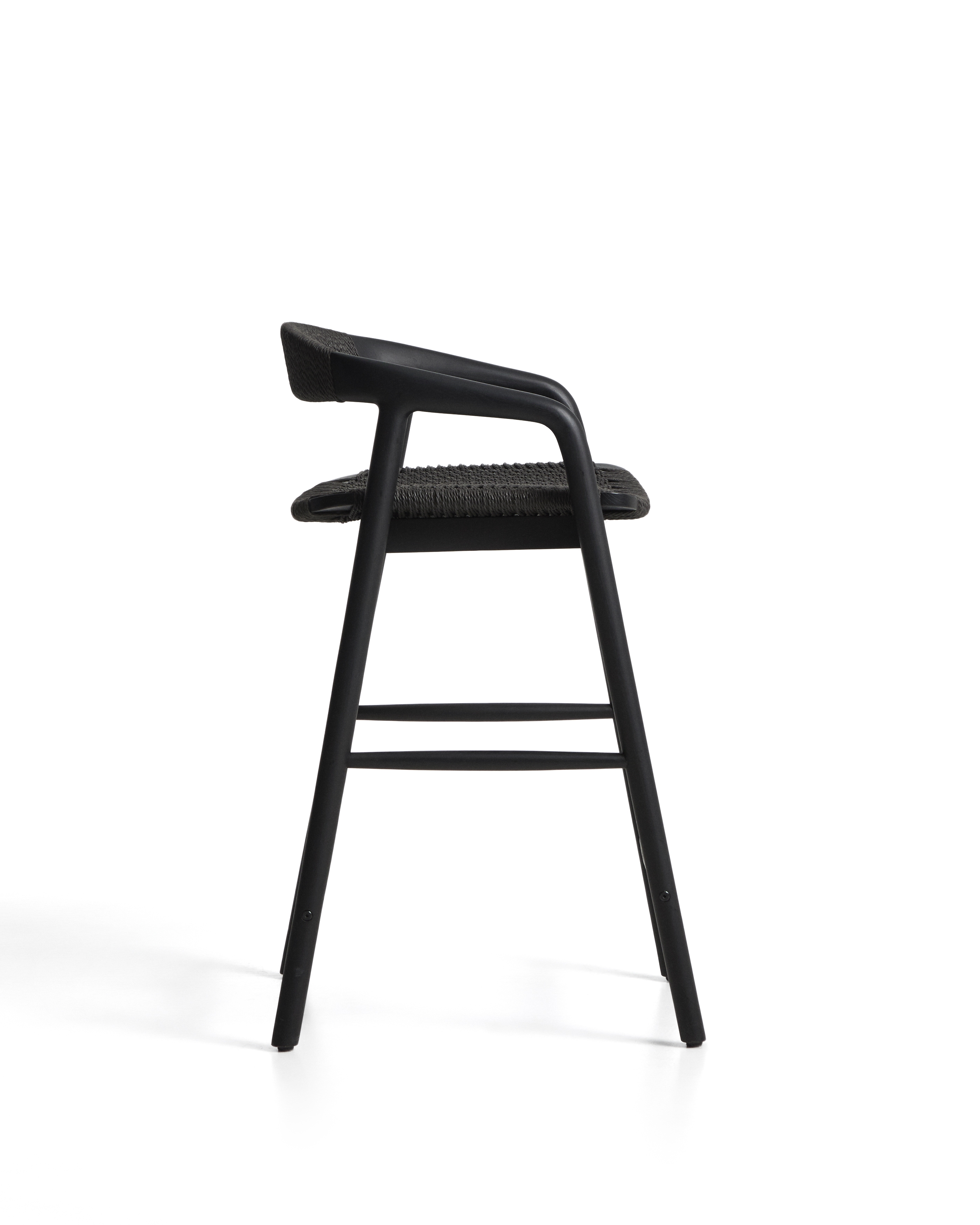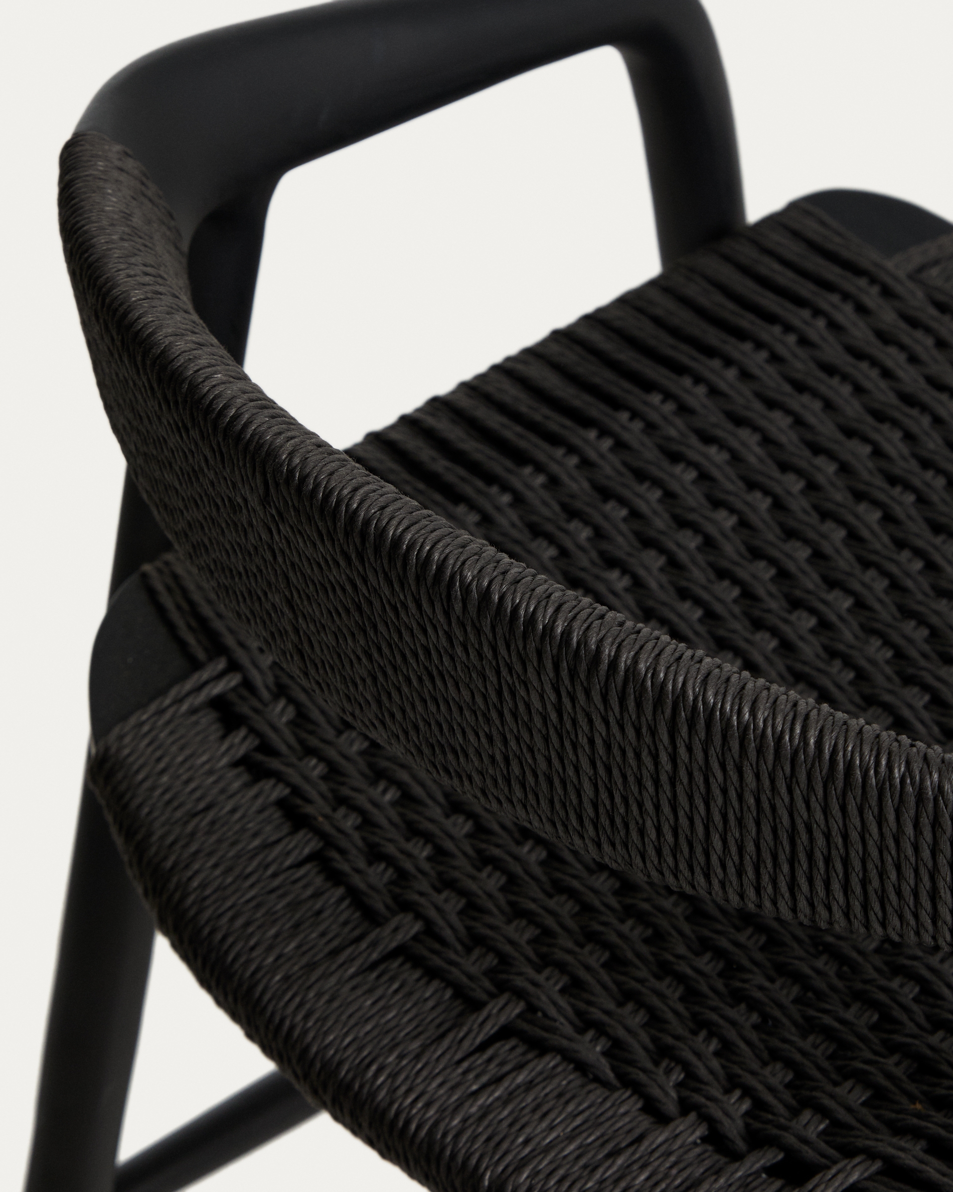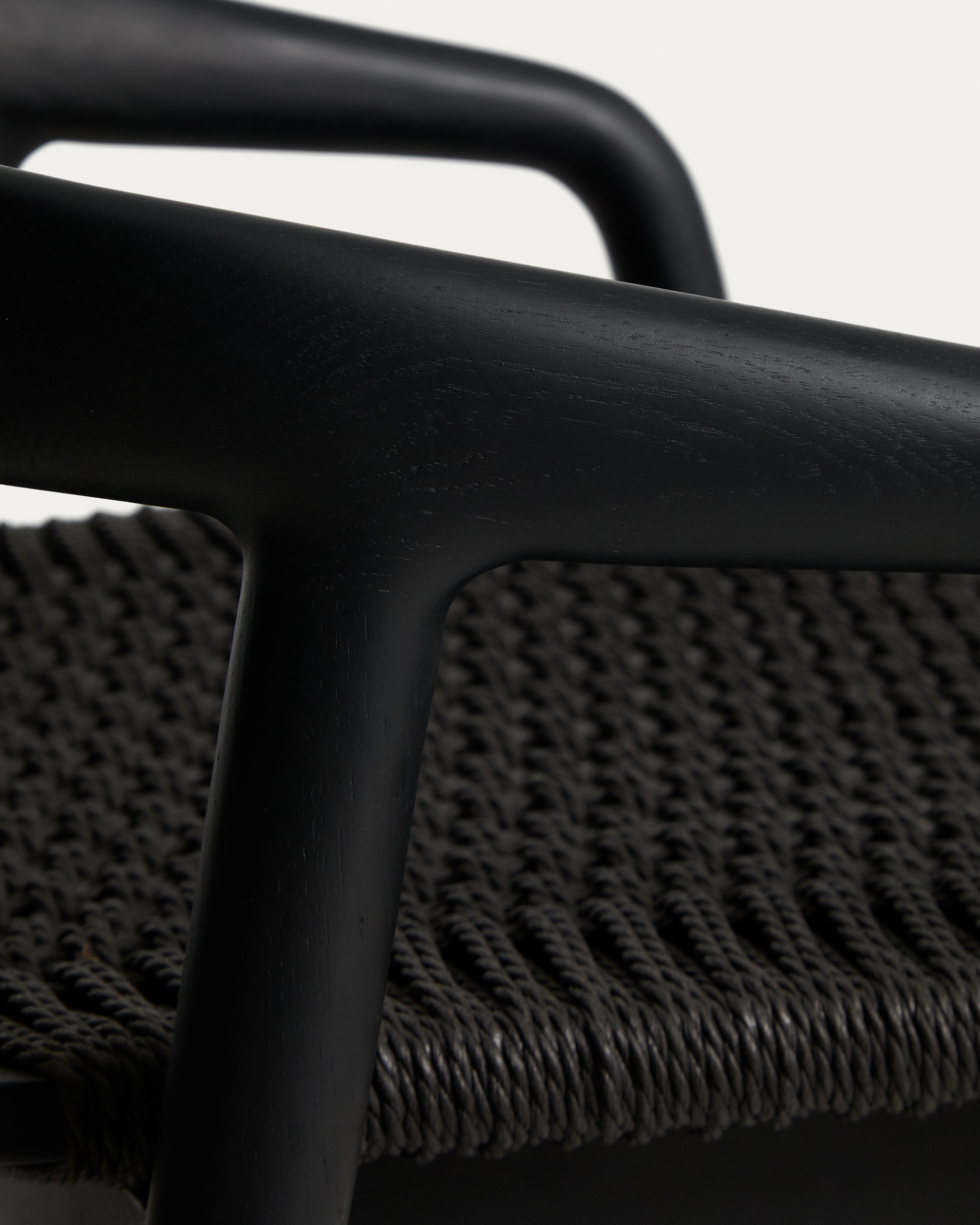 Уличный полубарный стул Derile из массива дуба и веревки в черной отделке