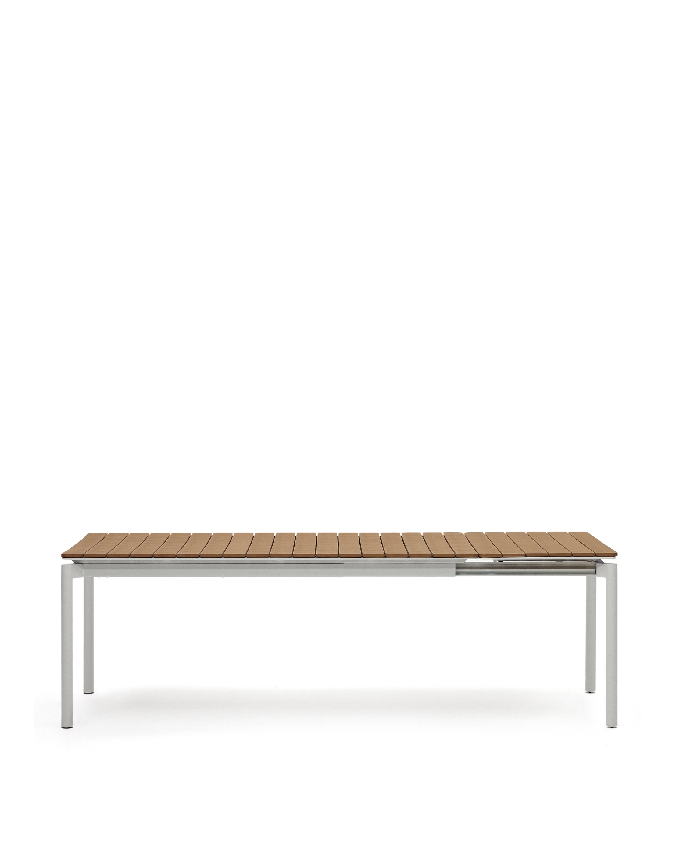 Этот раздвижной стол сочетает в себе функциональность и современный дизайн в лёгкой конструкции, идеально подходящей для тех, кто ценит универсальность без ущерба для стиля. Столешница из поливинилдена отличается высокой прочностью и проста в уходе: достаточно протереть её влажной тряпкой, чтобы сохранить внешний вид. Прочная, но лёгкая алюминиевая конструкция обеспечивает лёгкость перемещения и исключительную устойчивость на любой поверхности.