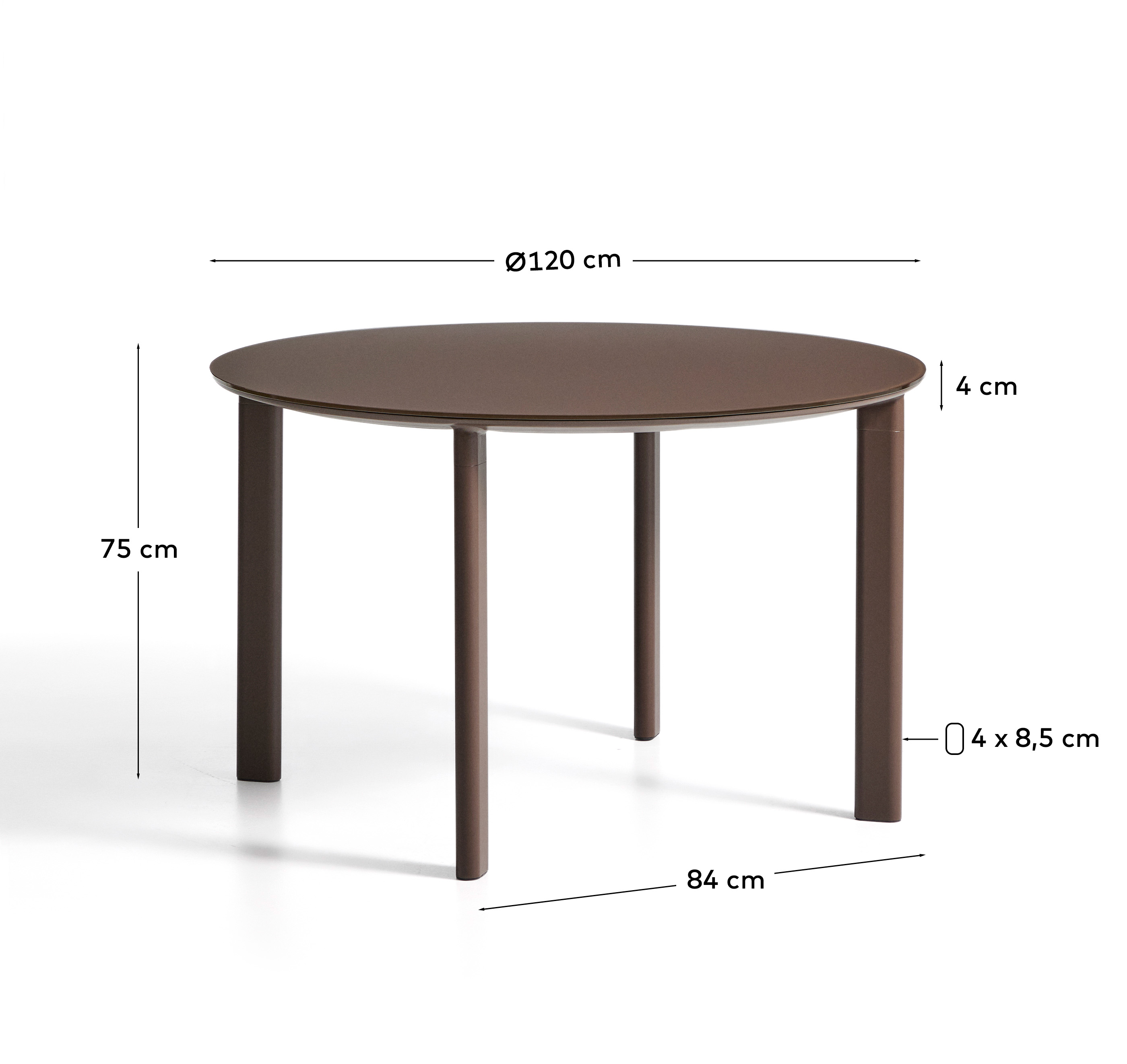 Уличный стол Erice из алюминия и закаленного стекла коричневого цвета, 120 см