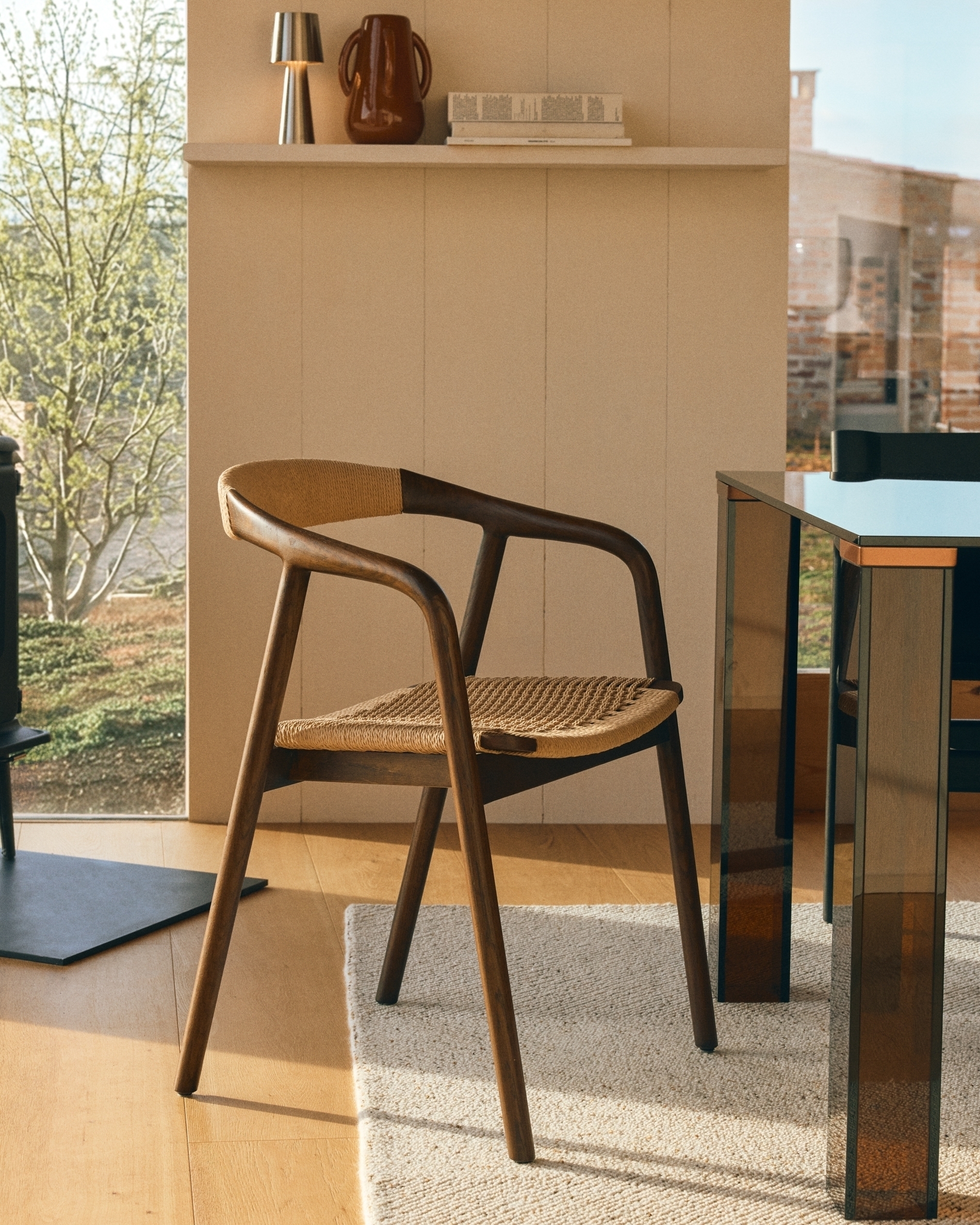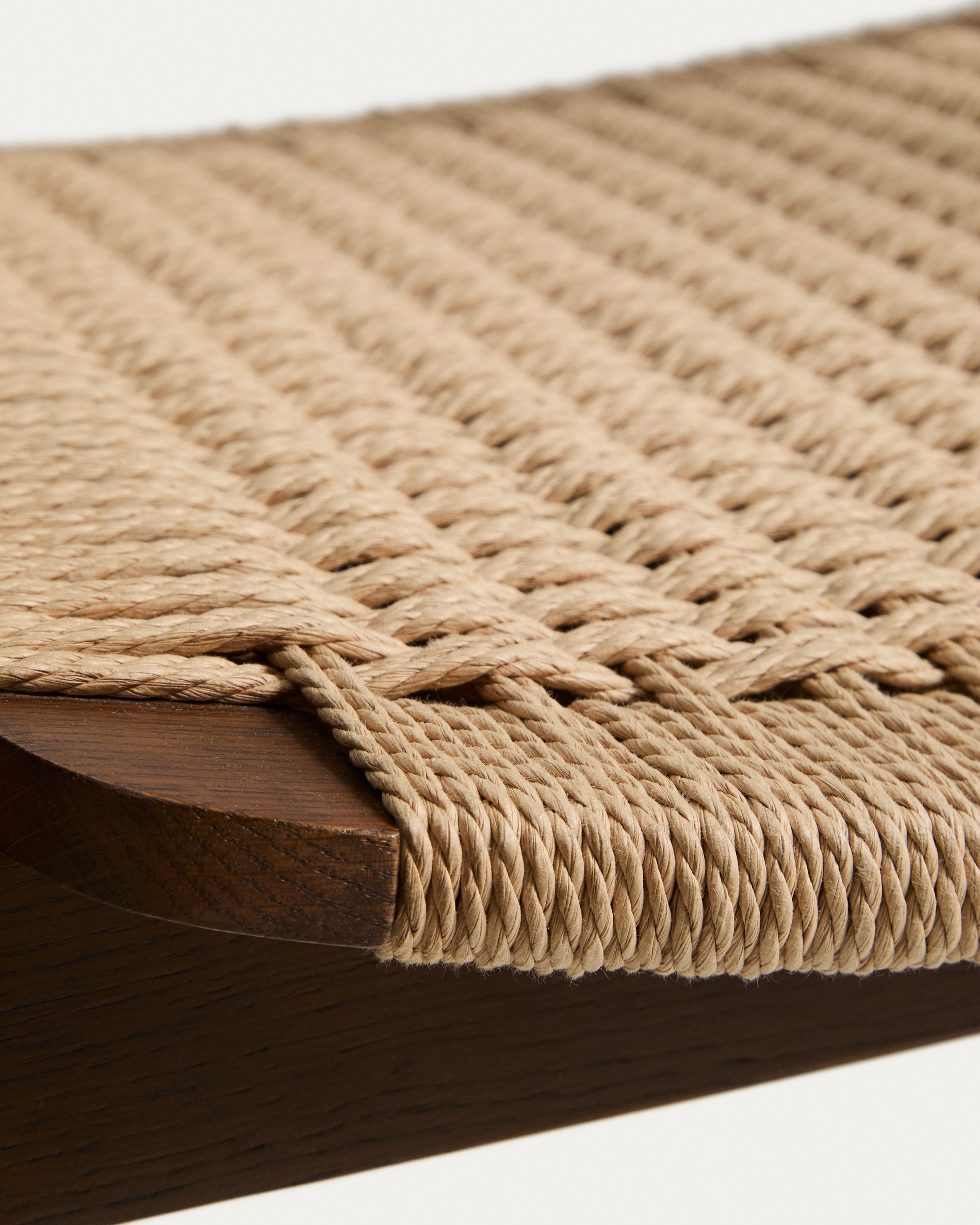 Derile сочетает в себе ручную работу и сбалансированные пропорции в изделиях, которые передают ощущение гармонии и тепла. Изготовленная из массива дуба, сертифицированного по стандарту FSC™ 100% с соблюдением цепочки поставок и модели ответственного лесопользования, конструкция имеет уникальную текстуру, раскрывающую характер материала. Матовое покрытие подчеркивает текстуру древесины и придает ей аутентичный вид. Сиденье и спинка сплетены вручную из бумажного шнура — легкого материала, обеспечивающего комфорт и сбалансированный визуальный эффект.