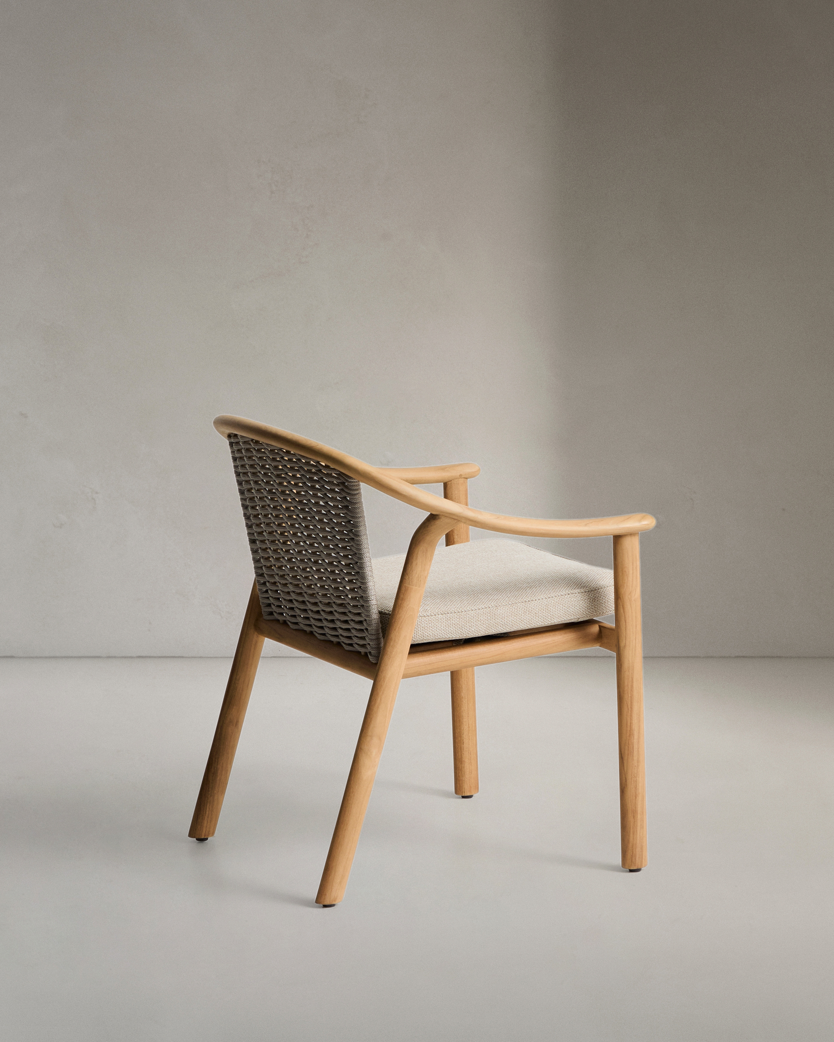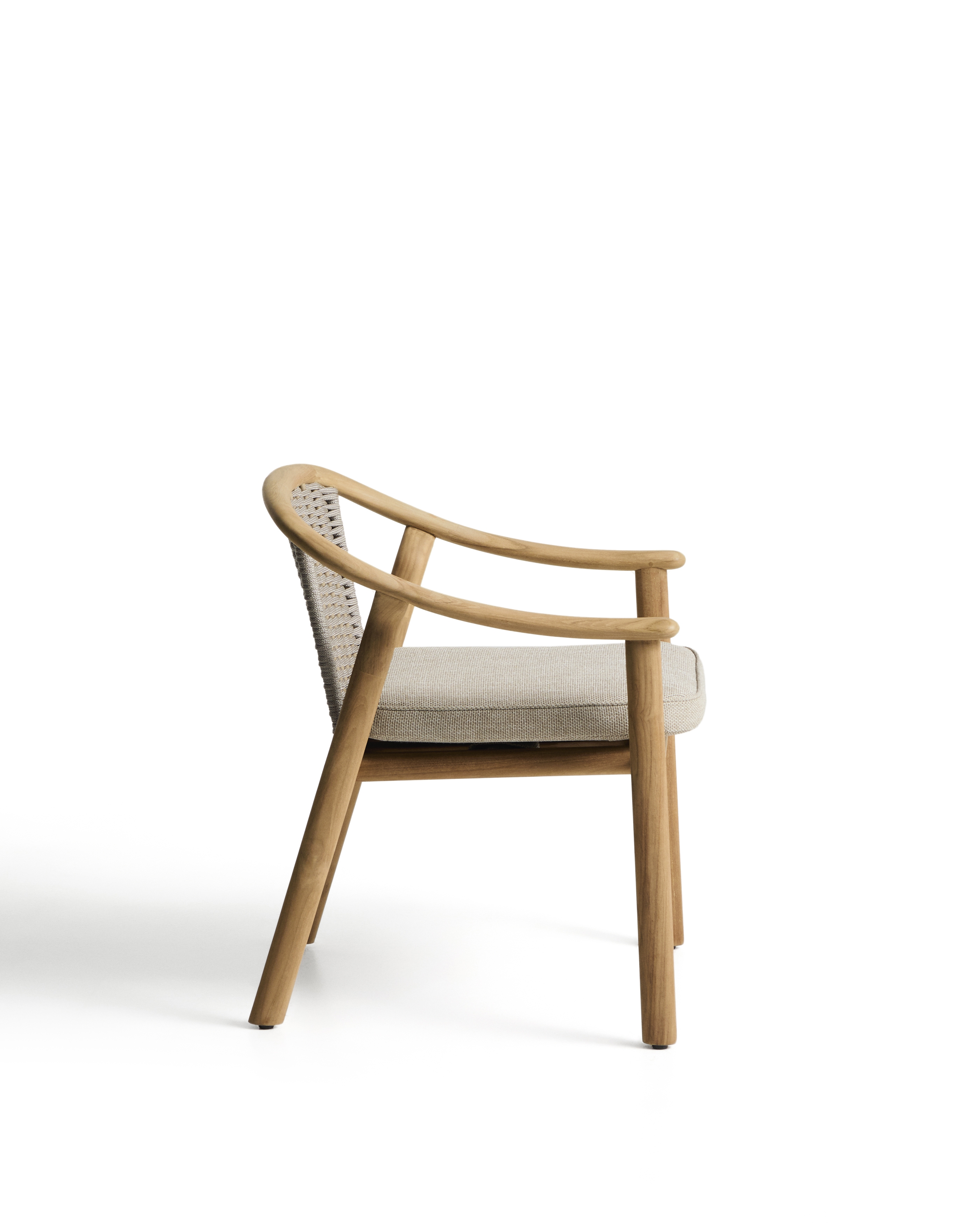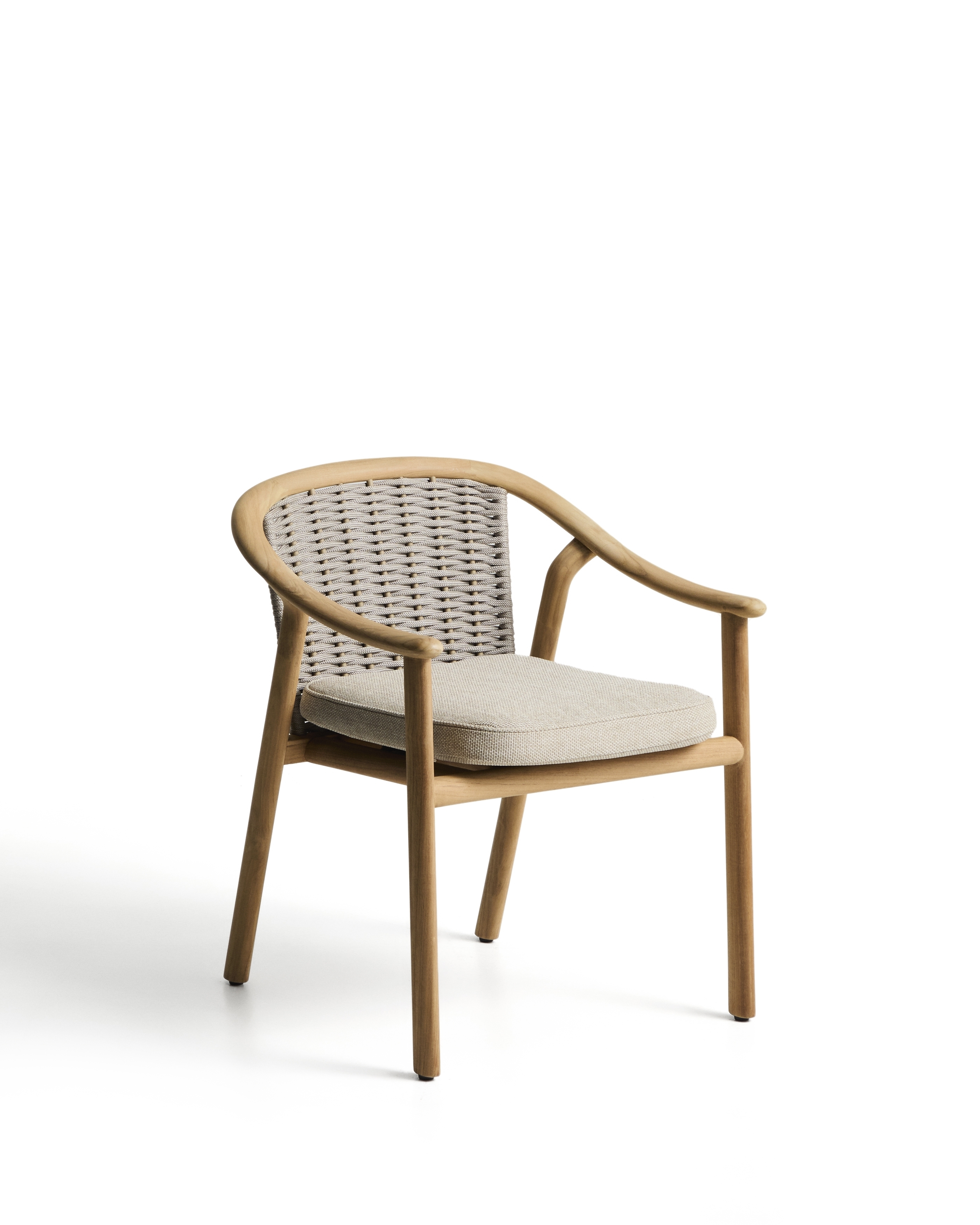 Коллекция Elunda включает в себя предметы мебели из массива тикового дерева, подходящие для использования на открытом воздухе и предназначенные для создания уютных пространств. Ее конструкция сочетает в себе плавные линии и спинку из плетеного вручную, устойчивого к УФ-излучению шнура, обеспечивающего комфортную поддержку. Подушки имеют съемные чехлы и изготовлены из сетчатого пеноматериала, который пропускает воду и способствует быстрому высыханию, что позволяет использовать их на открытом воздухе в течение длительного времени. Коллекция изготовлена из древесины, сертифицированной по стандарту FSC™ 100%, полученной из ответственно управляемых лесов.