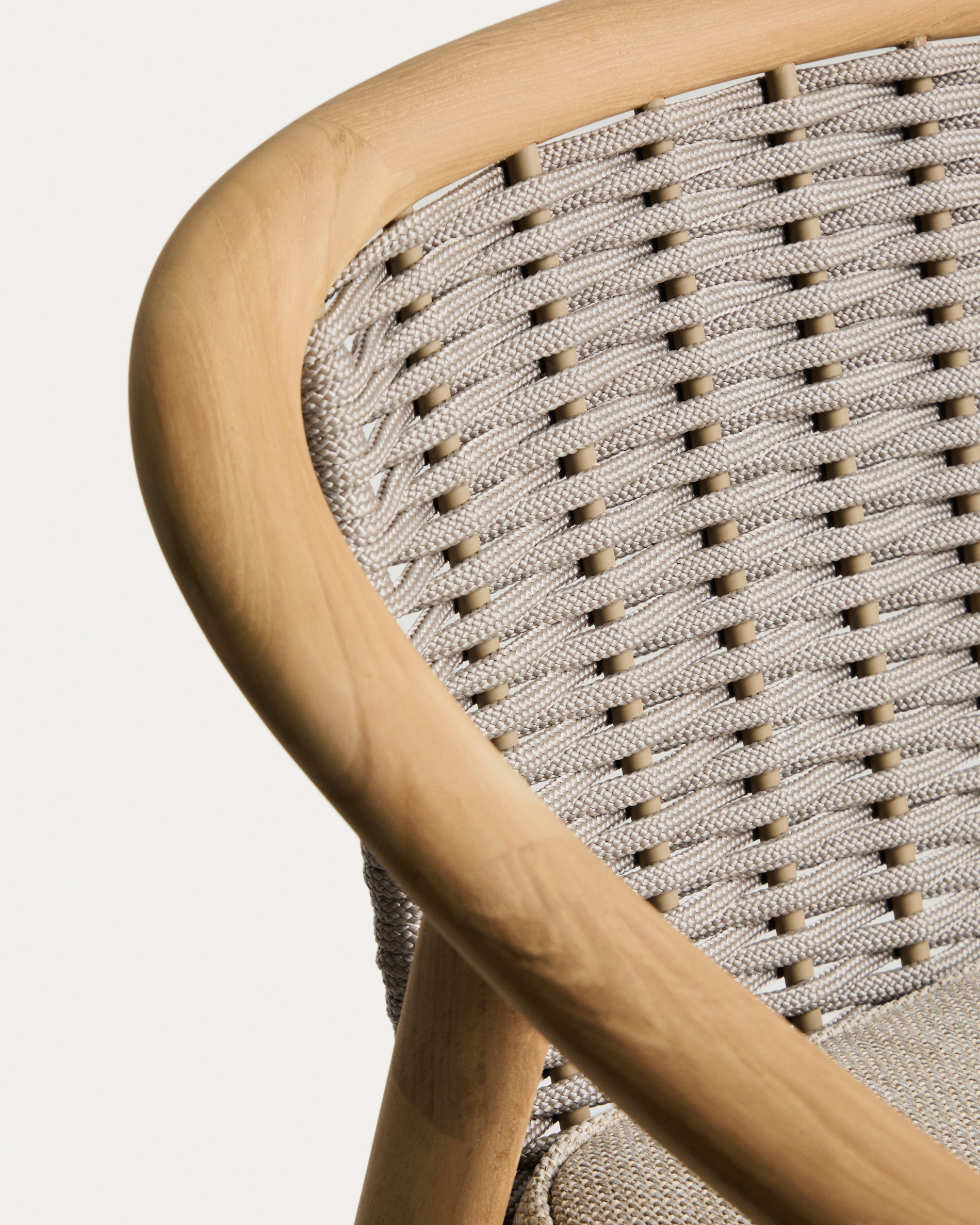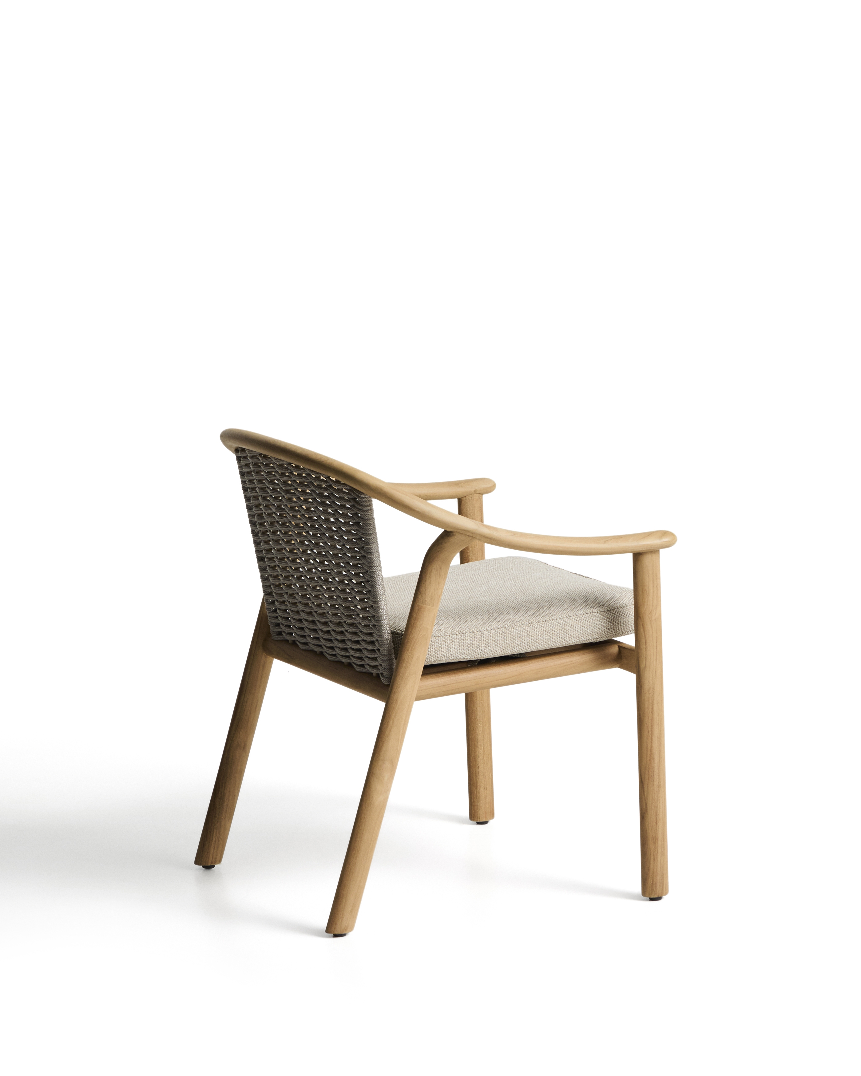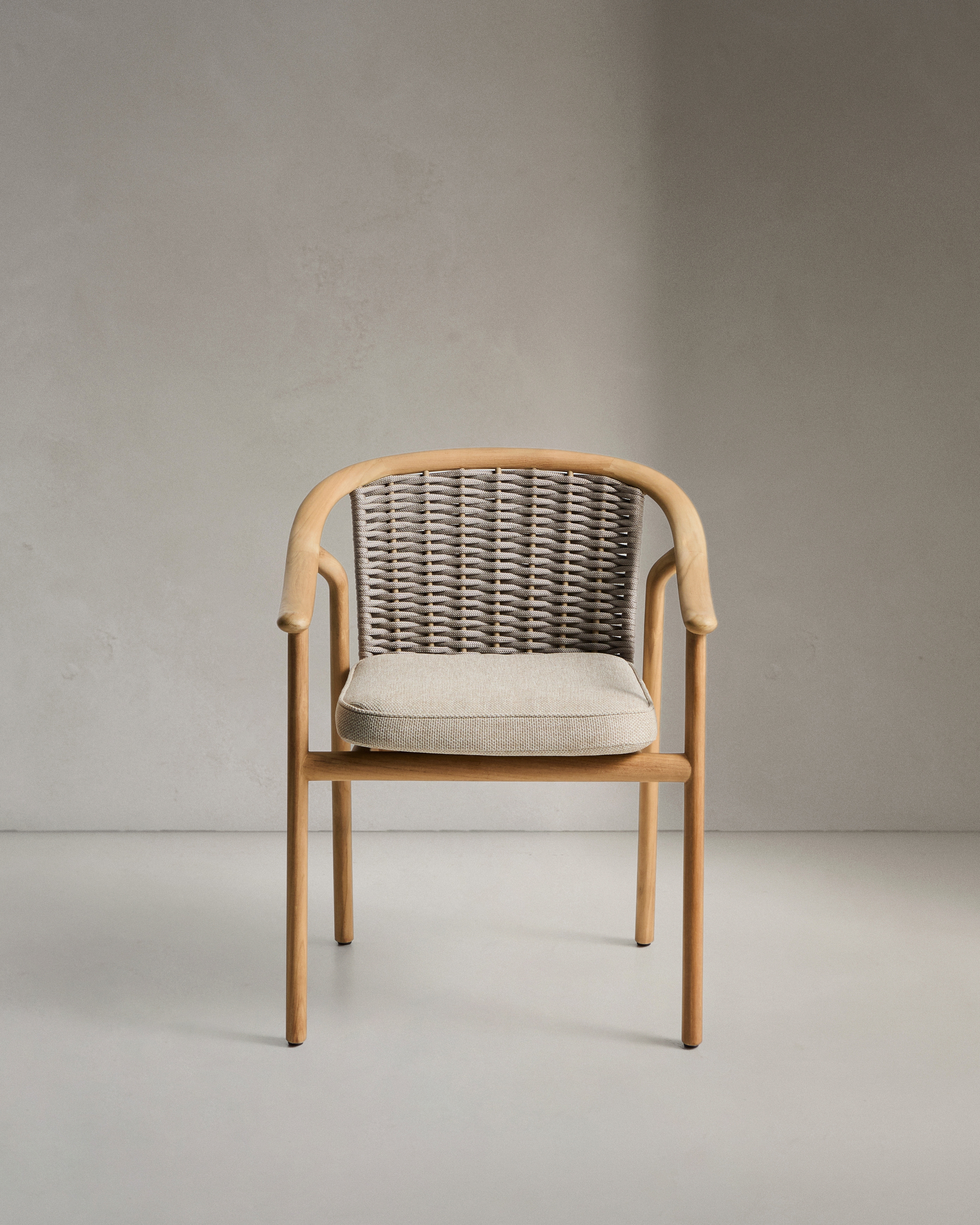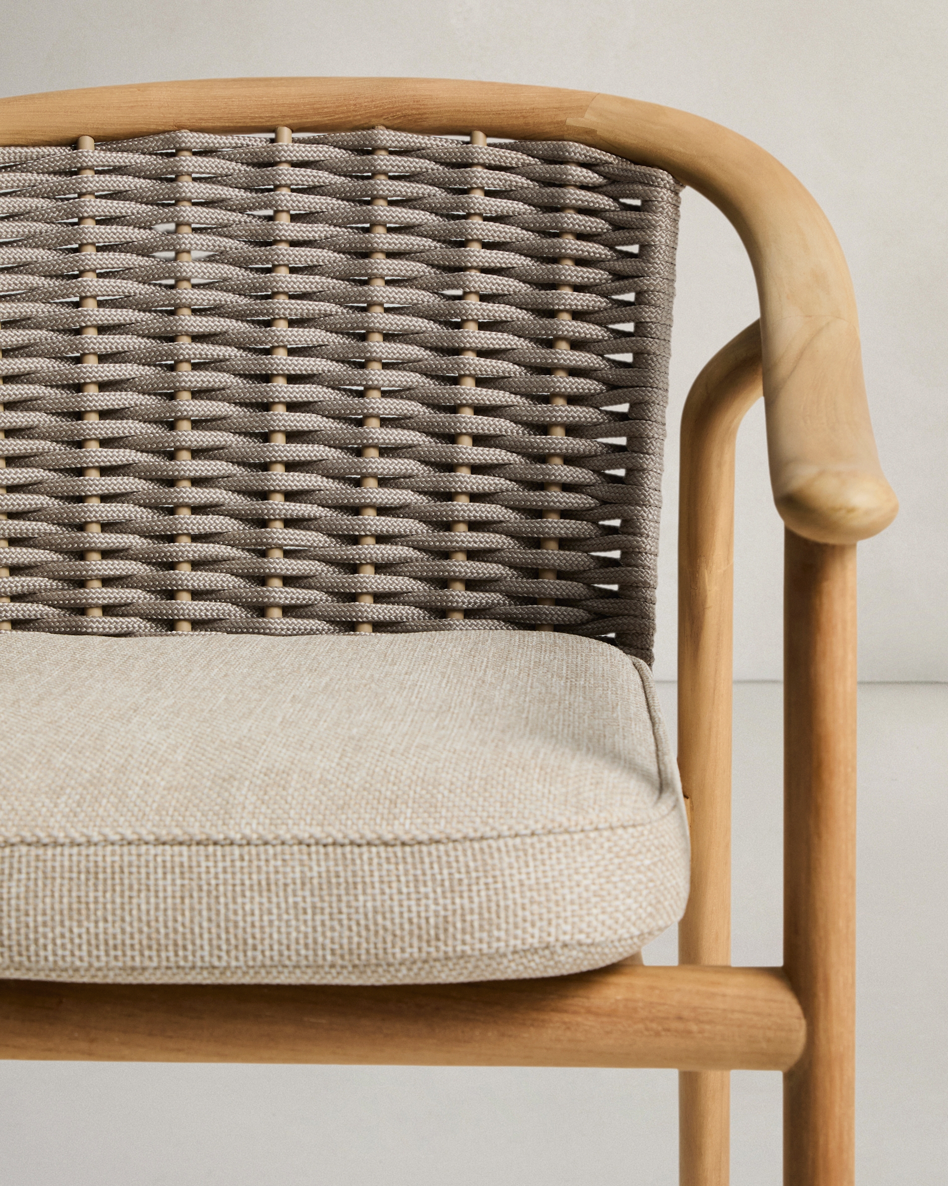 Коллекция Elunda включает в себя предметы мебели из массива тикового дерева, подходящие для использования на открытом воздухе и предназначенные для создания уютных пространств. Ее конструкция сочетает в себе плавные линии и спинку из плетеного вручную, устойчивого к УФ-излучению шнура, обеспечивающего комфортную поддержку. Подушки имеют съемные чехлы и изготовлены из сетчатого пеноматериала, который пропускает воду и способствует быстрому высыханию, что позволяет использовать их на открытом воздухе в течение длительного времени. Коллекция изготовлена из древесины, сертифицированной по стандарту FSC™ 100%, полученной из ответственно управляемых лесов.