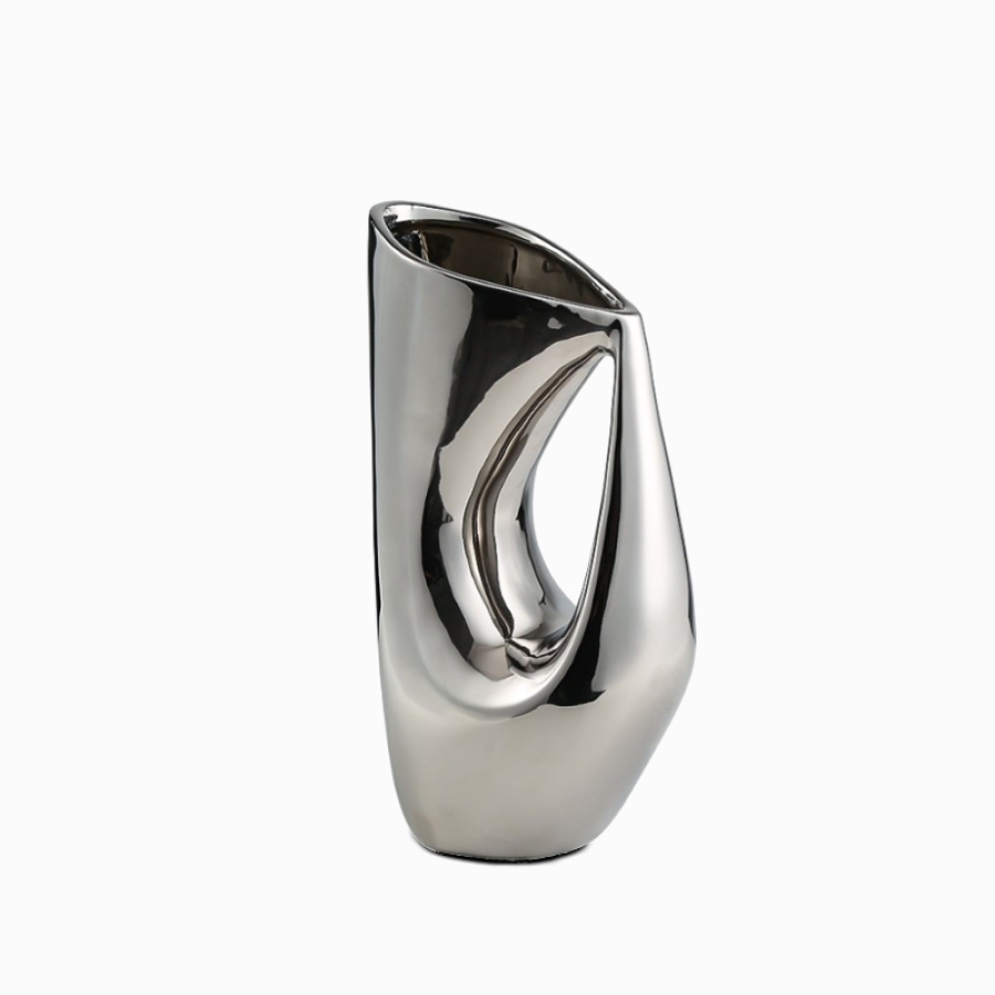 Глубокий черный и серебряный оттенок вазы создает атмосферу загадочности и утонченности, идеально вписываясь в любые современные интерьеры.