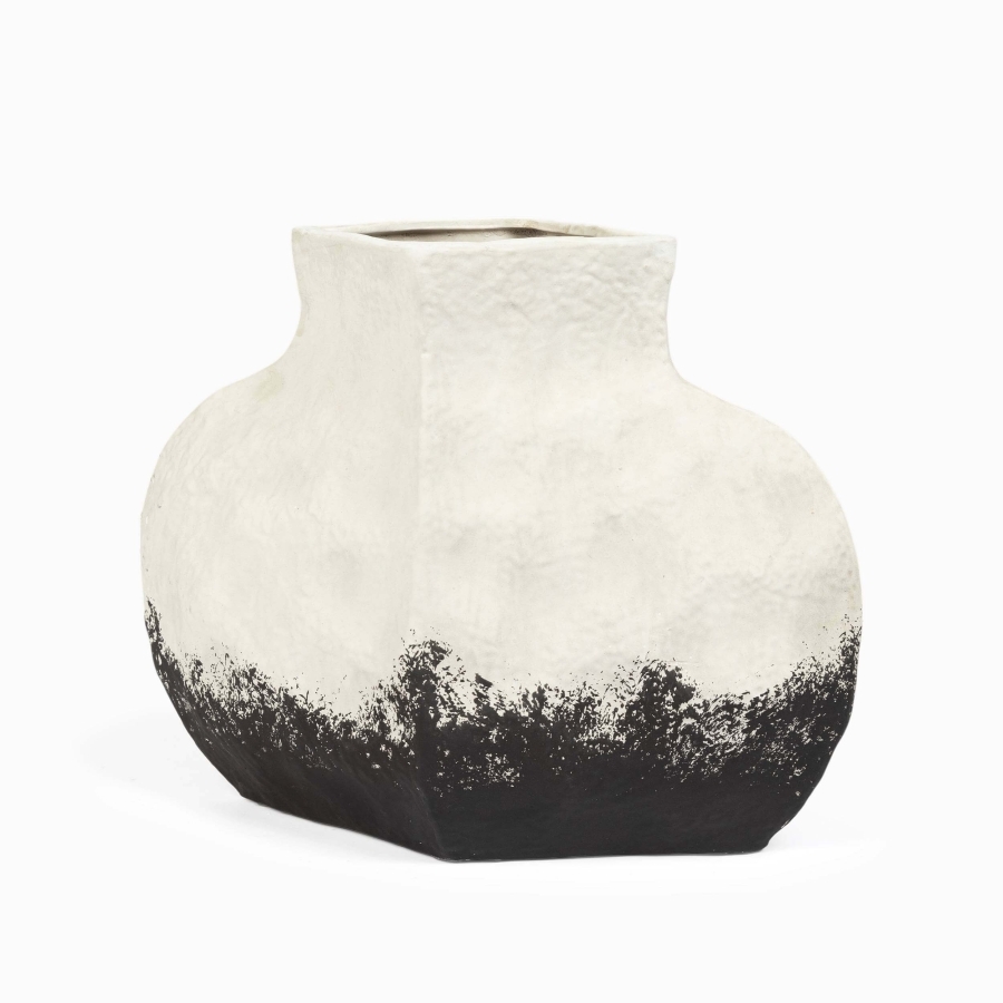 Эффектное черно-белое сочетание создает динамичный контраст, придавая вазе современный и стильный вид.