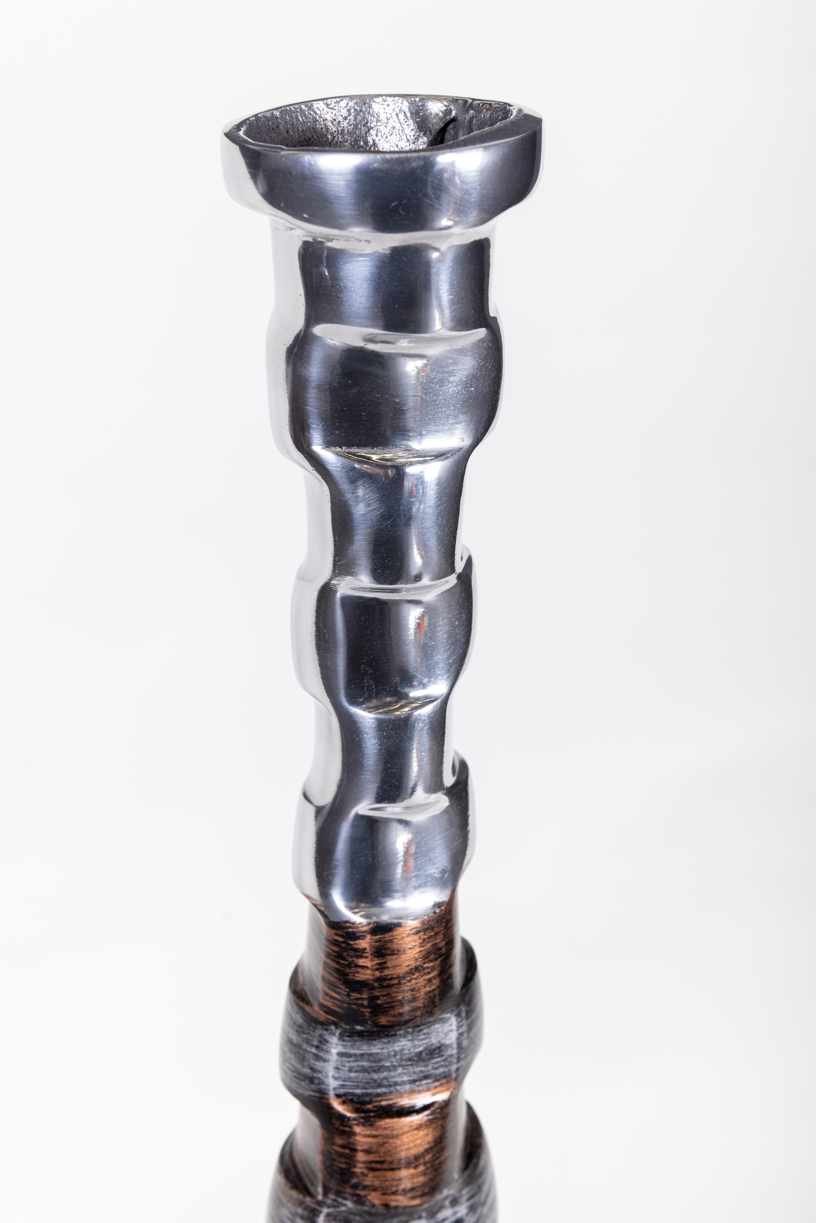 Металлическая ваза Stripes высокая сочетает в себе глянцевый блеск серебра и элегантный рисунок в виде коричневых и серых полос. Тщательно подобранные цвета подчеркивают изысканность как самих изделий, так и окружающей обстановки, предавая ей элегантную роскошь.