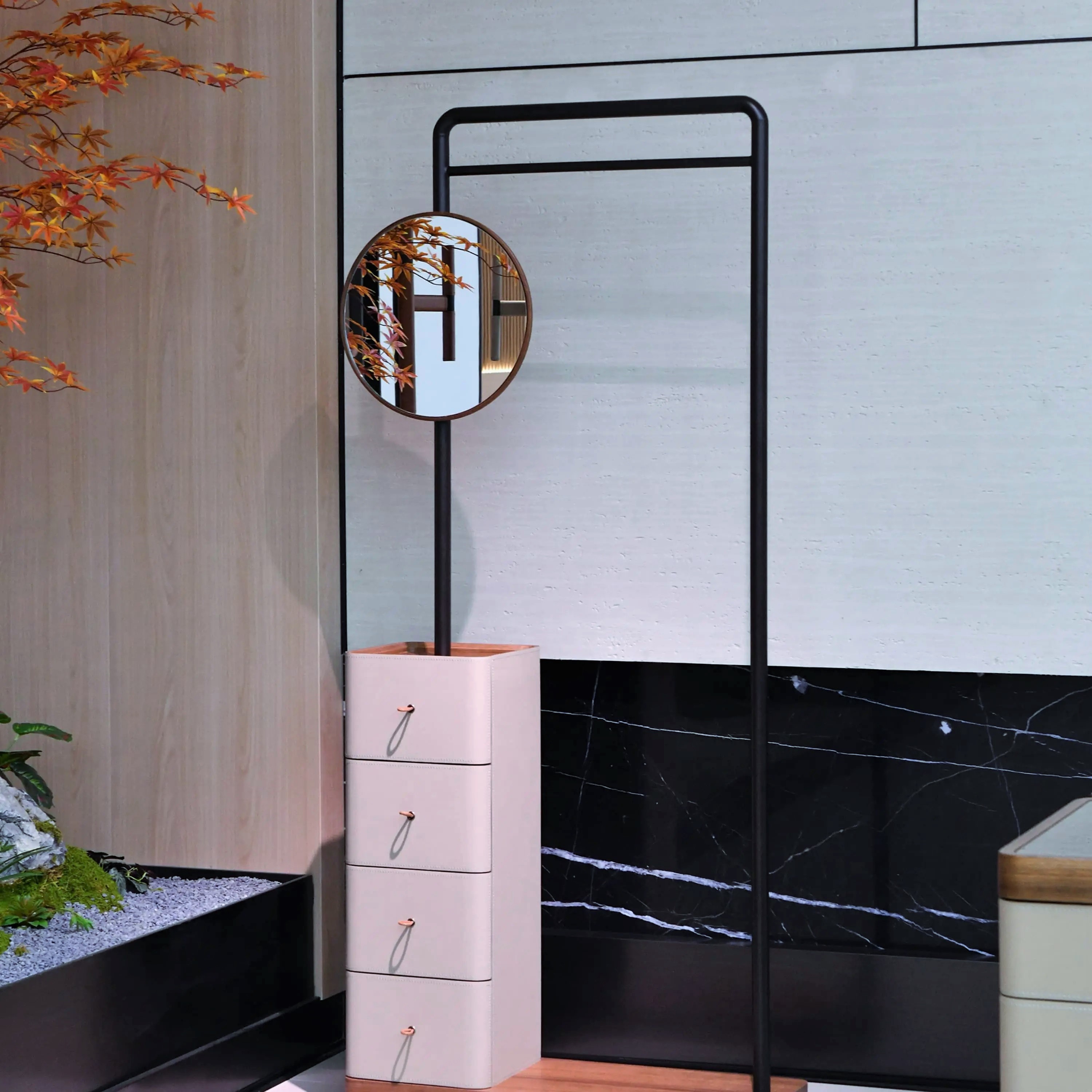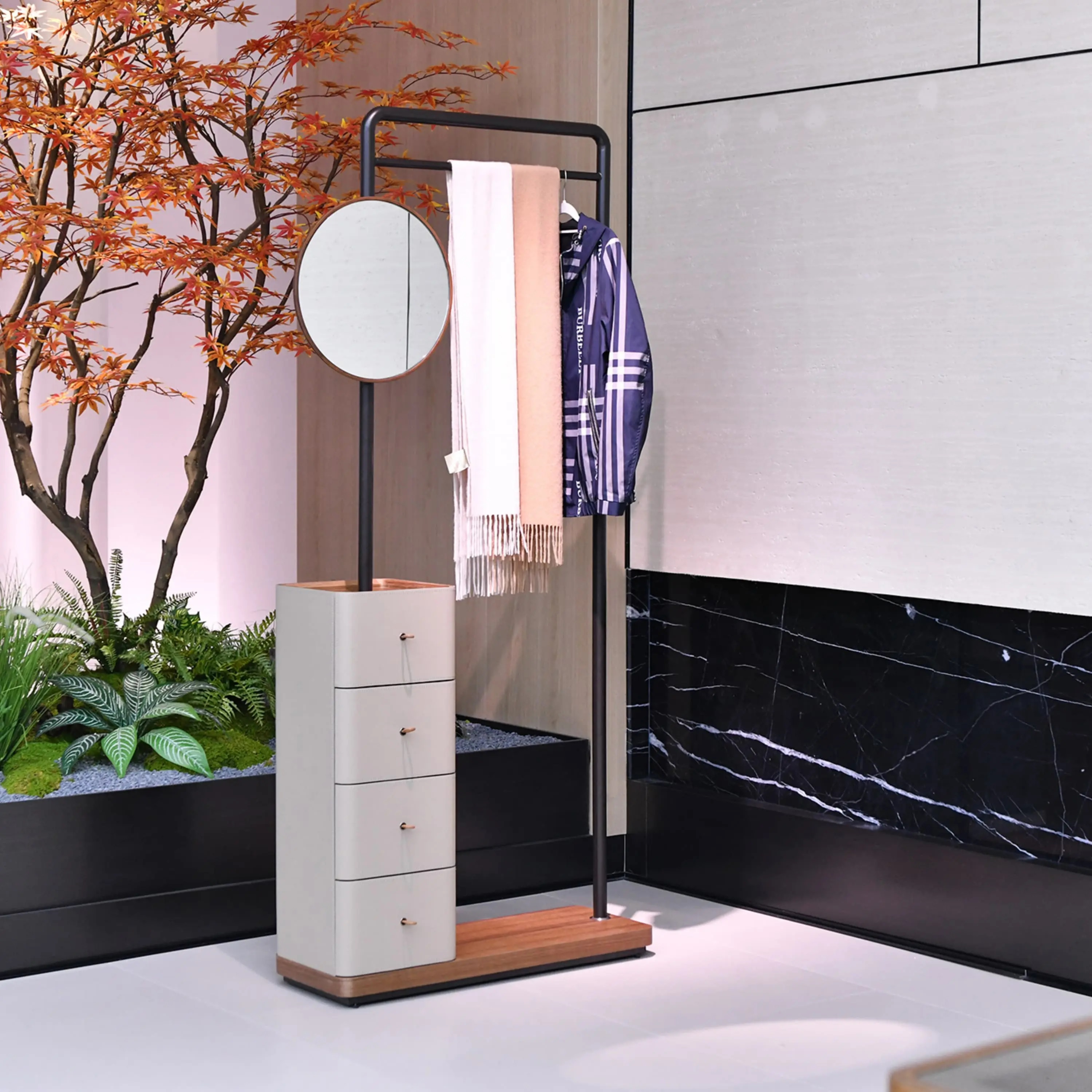 Современный комод с рейлингом для одежды.