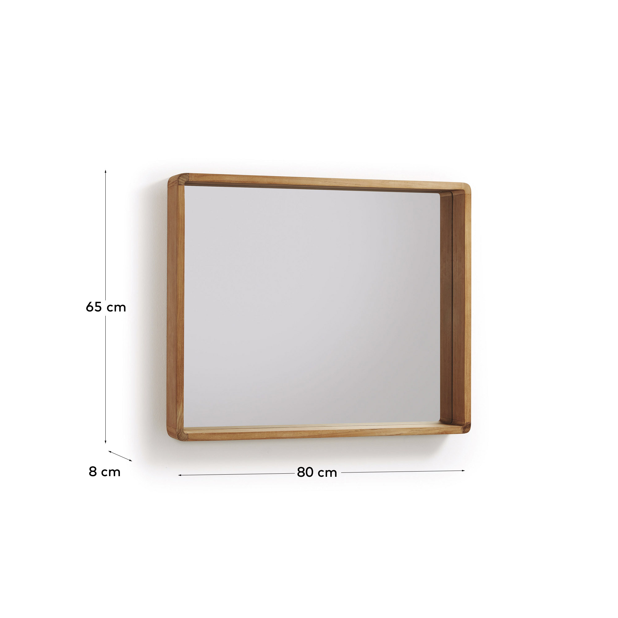 Зеркало для ванной комнаты с натуральной деревянной рамкой из тикового дерева.