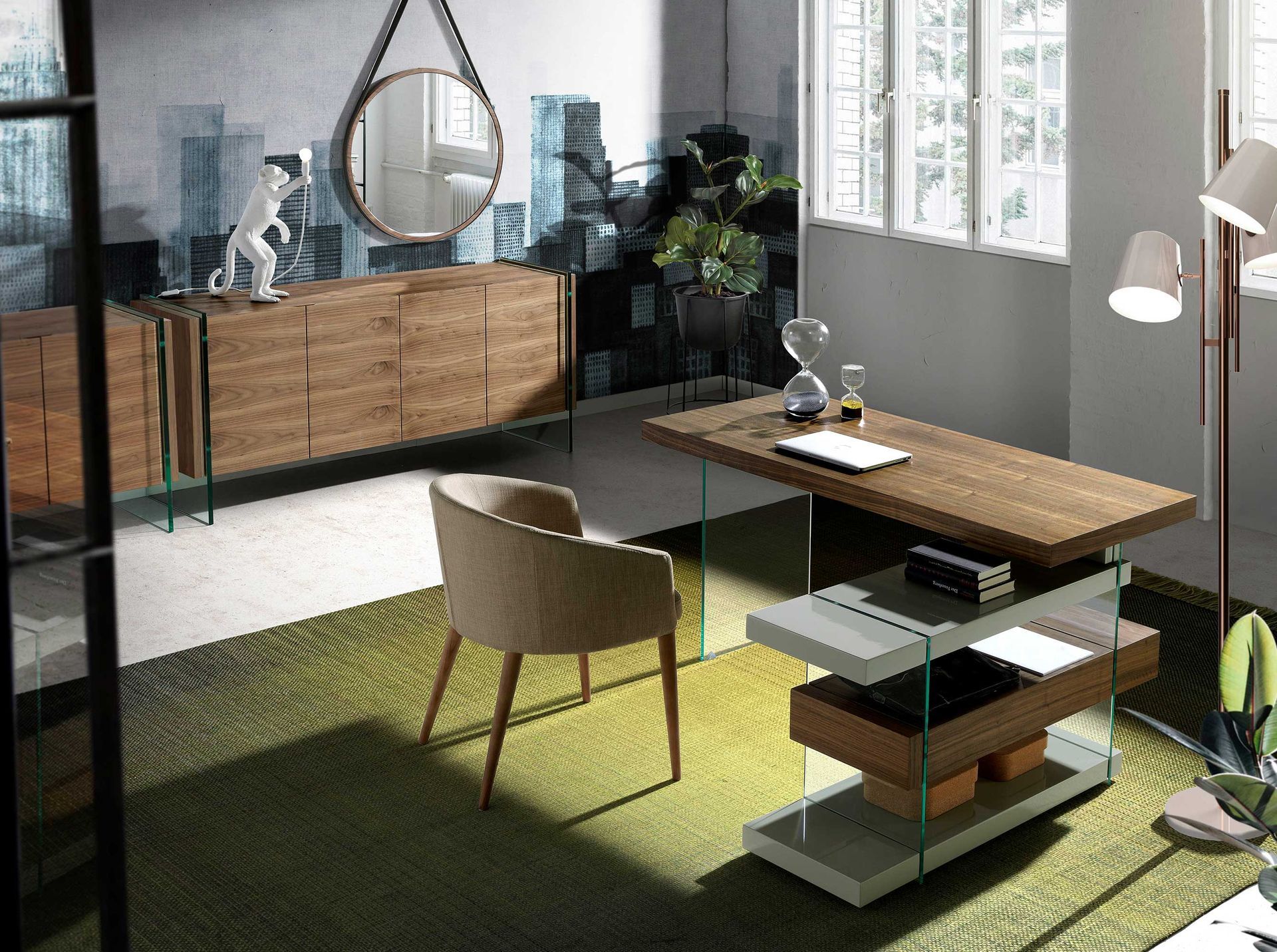 Круглое зеркало Nogal — дизайнерский предмет интерьера от фабрики Angel Cerda. Зеркало с первой секунды удивляет своим оригинальным внешним видом. Удивляешься, как дизайнеры рискнули подвесить столь массивный предмет на простой кожаный ремень и насколько они гарантируют надежность. В этом и весь секрет. Изделие имеет двойной крепеж, поэтому абсолютно безопасно. Зато впечатление от увиденного просто зашкаливает. Зеркало круглой формы с диаметром 75 см. Рама выполнена из шпона натурального орехового дерева. Она сделана таким образом, что буквально оборачивает зеркальное полотно как спереди, так и сзади. Такая технология гарантирует, что стекло не выскочит при эксплуатации. Обруч обернут кожаным подвесом, который выше его на 25 см. Ширина подвеса совпадает с толщиной рамы, плюс к этому, она прочно закреплена по всей окружности, кроме верхнего участка. Все это обеспечивает надежность и безопасность изделия. Полная высота зеркала составляет 100 см, а вес — 73 кг. Монтаж к стене рекомендуется проводить вдвоем. Крепеж и подробная инструкция входят в комплектацию.