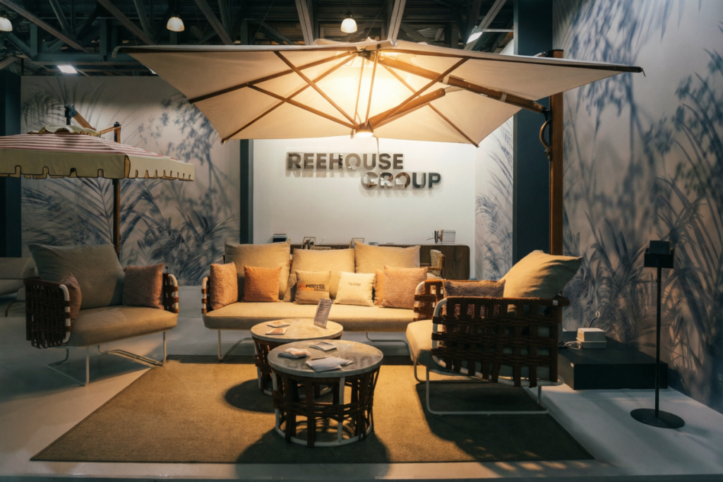 - Инновационный выдвижной механизм позволяет открывать и закрывать зонт одним движением, не задевая мебель под ним.