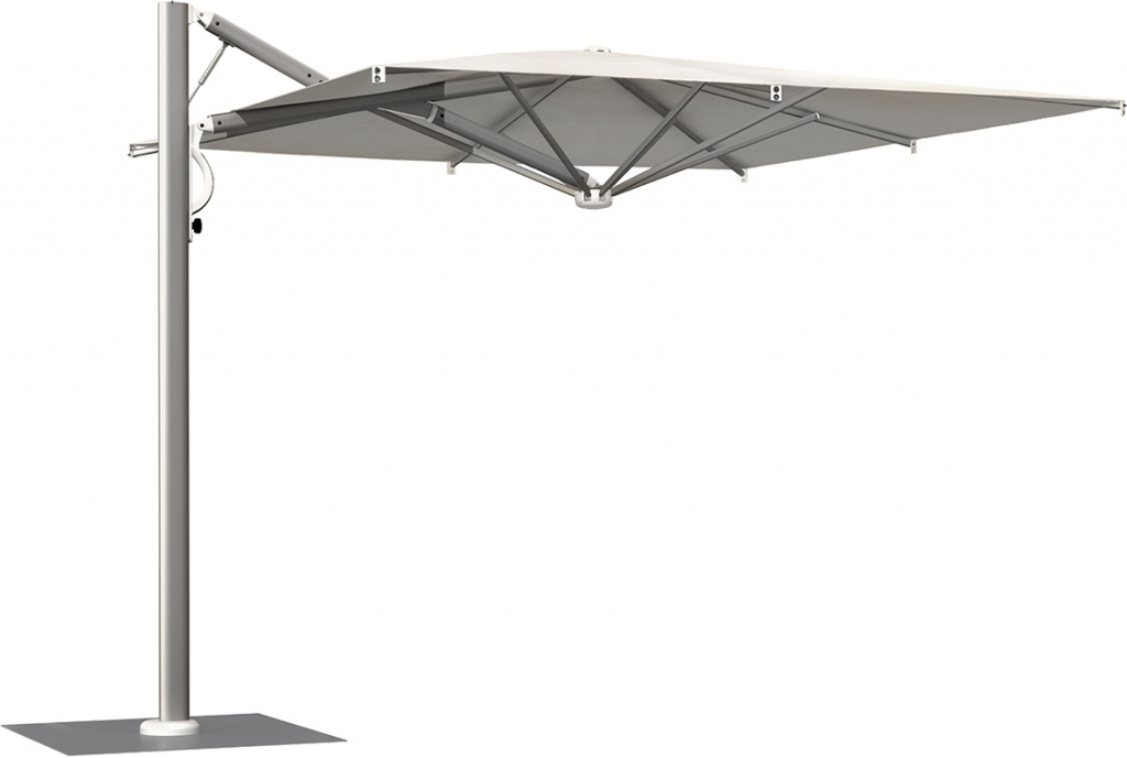 Уникальный зонт Astro Titanium - футуристический продукт, подходящий для современных открытых пространств в стиле минимализм. Больше не нужны механизмы и тросы для открытия зонта, данная новинка работает на газовом поршне. Легким нажатием кнопки зонт плавно открывается и закрывается. Кроме того, новая система открытия-закрытия позволяет не убирать из-под зонта мебель, зонт аккуратно придвигается к опоре и не нависает над мебелью.