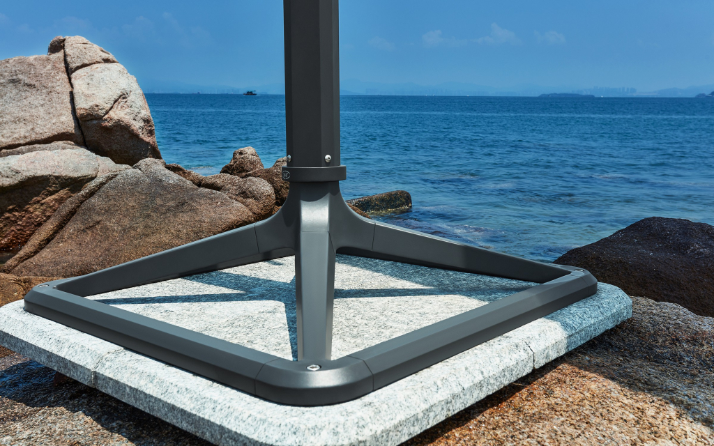 - Рама зонта выполнена из алюминия, что обеспечивает долговечность и устойчивость к внешним воздействиям даже при интенсивной эксплуатации на открытом воздухе.